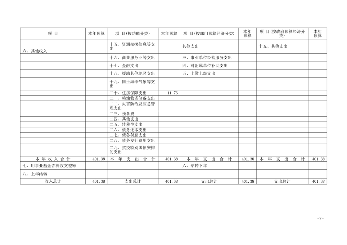 2022年一般公共预算拨款收入401.38万元,具体安排情况如下: