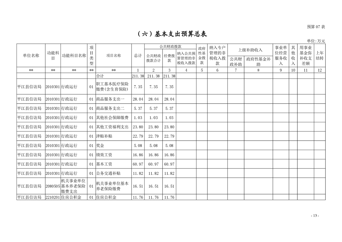 (十三)项目支出明细表(A)(按政府预算经济分类)