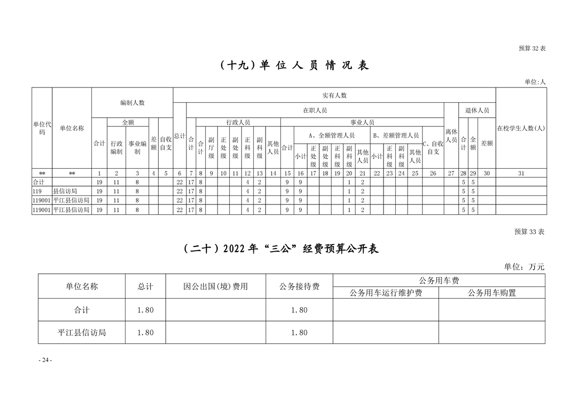 2022年平江县信访局机关运行经费一般公共预算拨款28.04万元,比2021年预算增加1.81万元,上调1.81%。