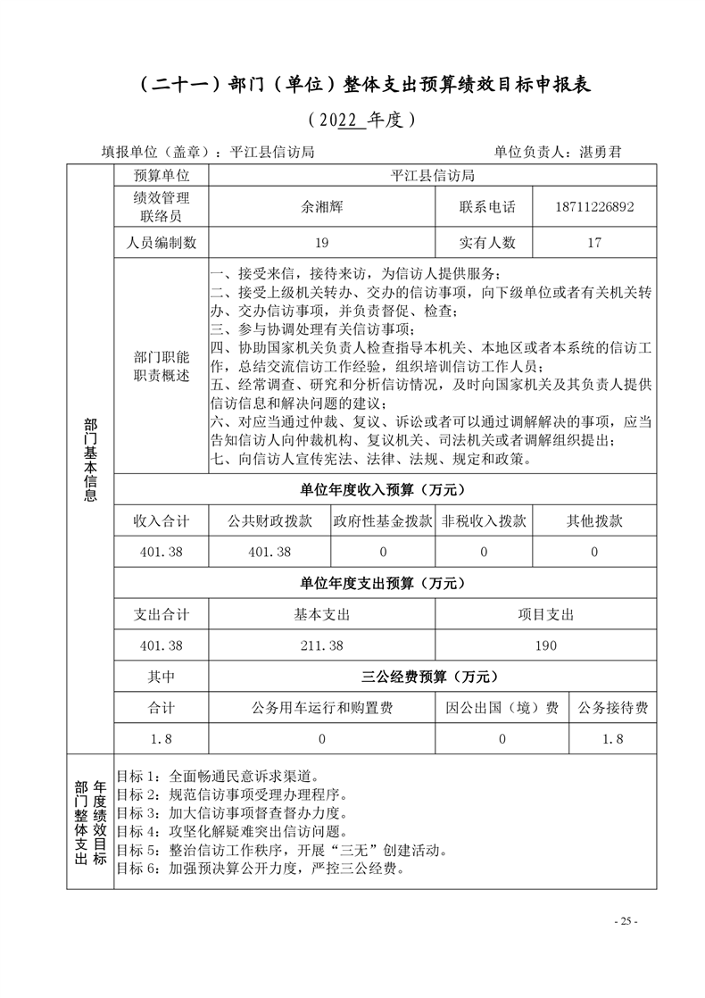 (二十一)部门(单位)整体支出预算绩效目标申报表
