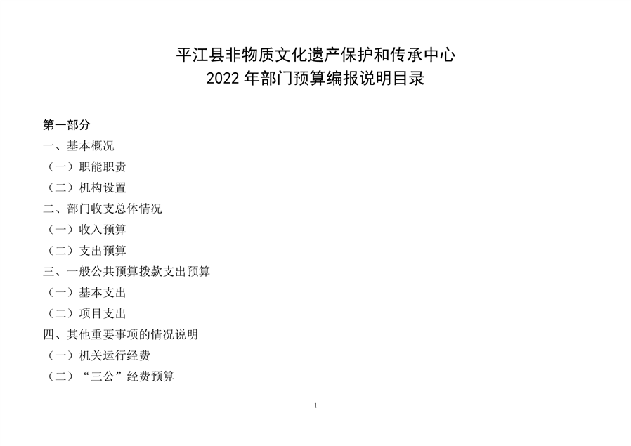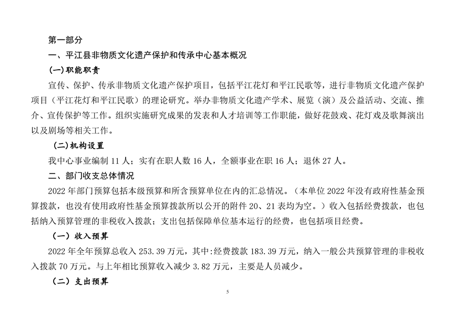 平江县非物质文化遗产保护和传承中心2022年部门预算编报说明