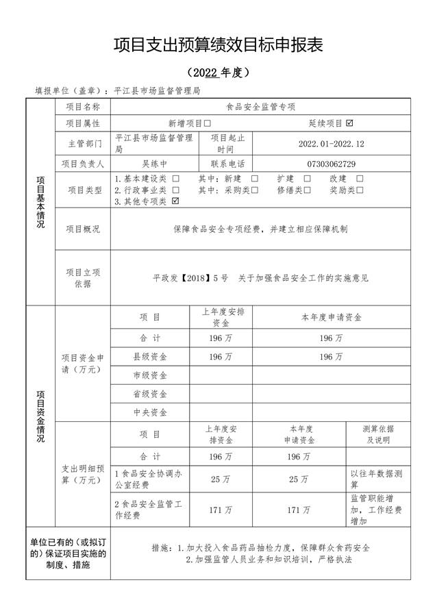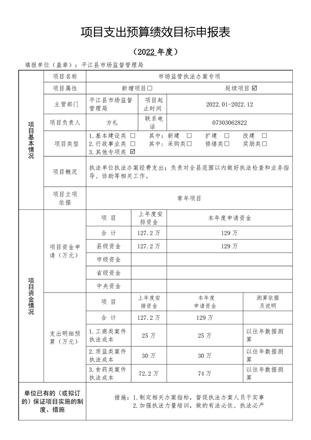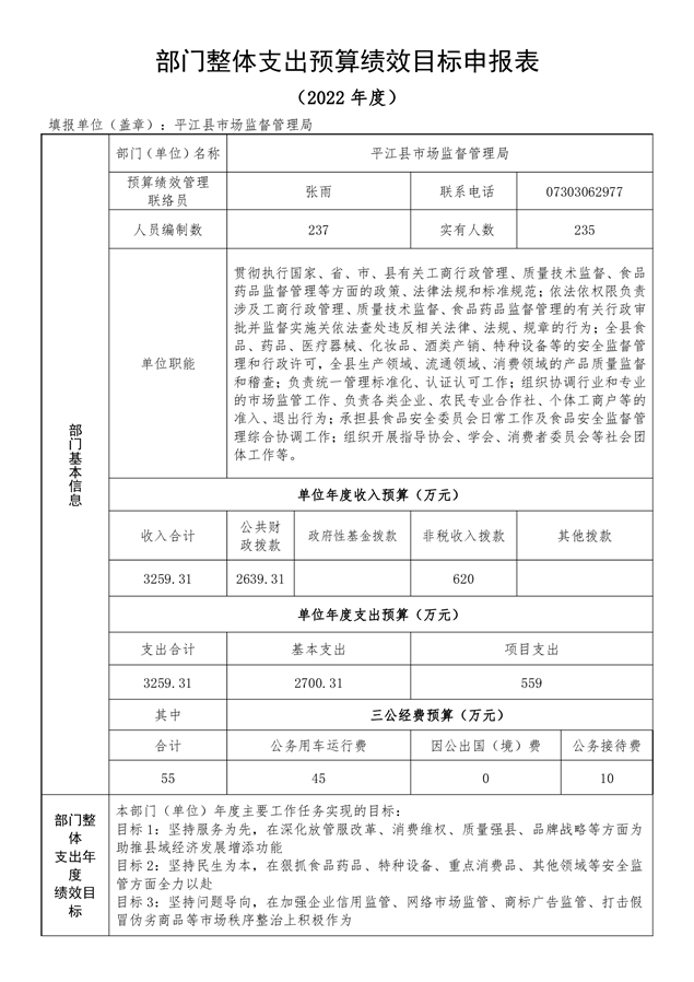 平江县市场监督管理局2022年部门预算公开及编报说明