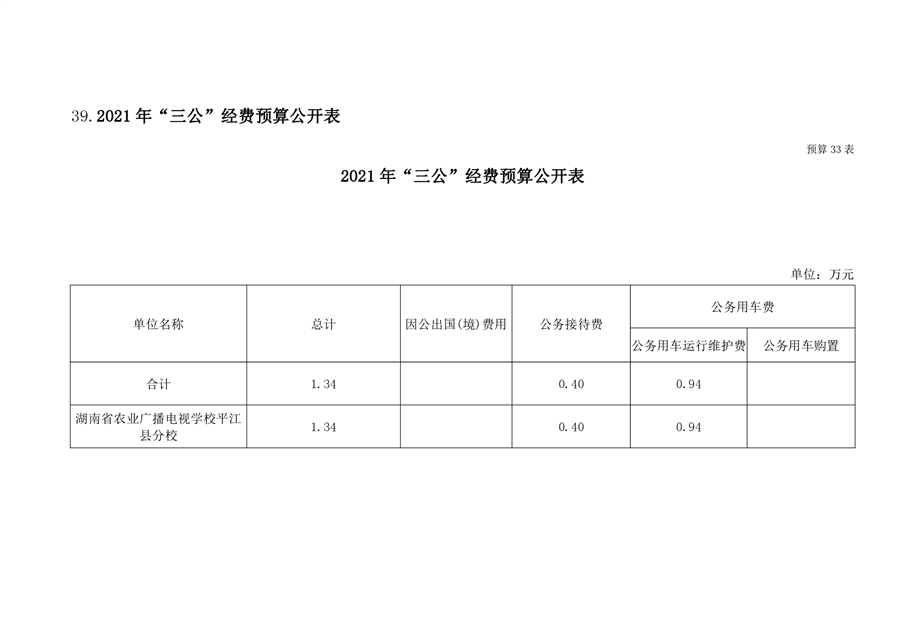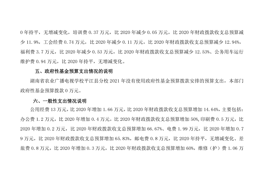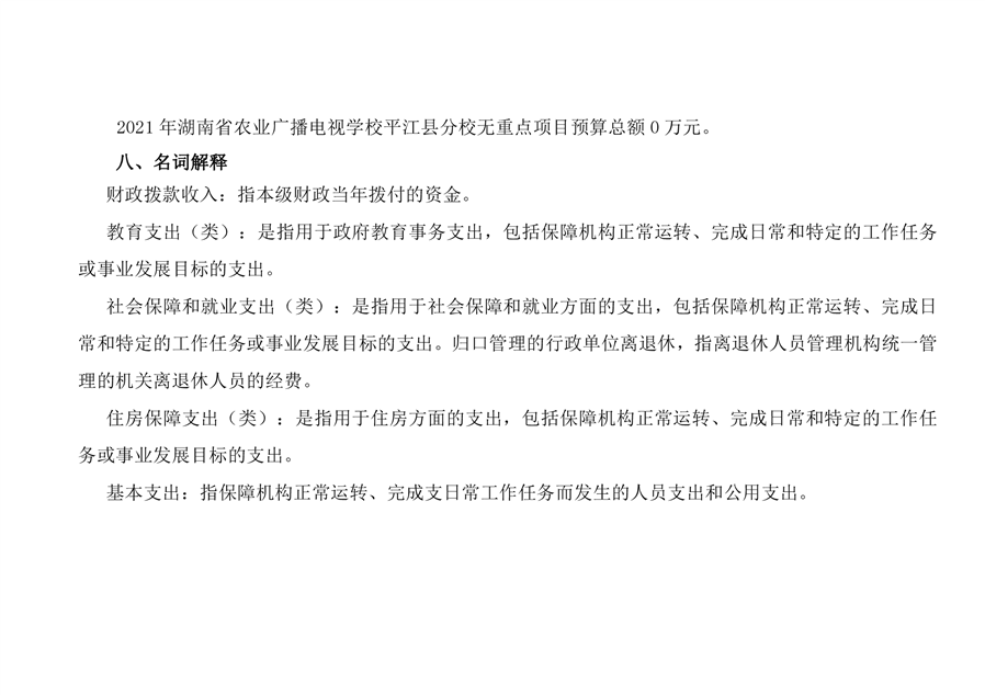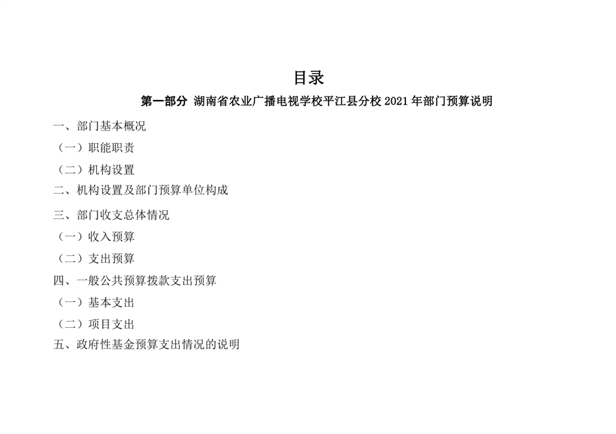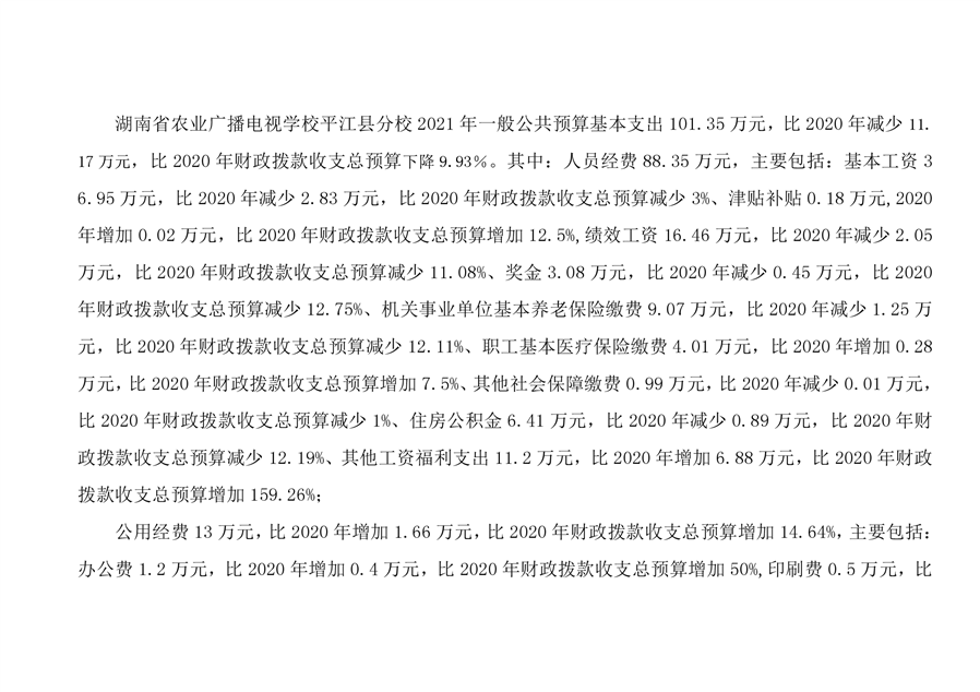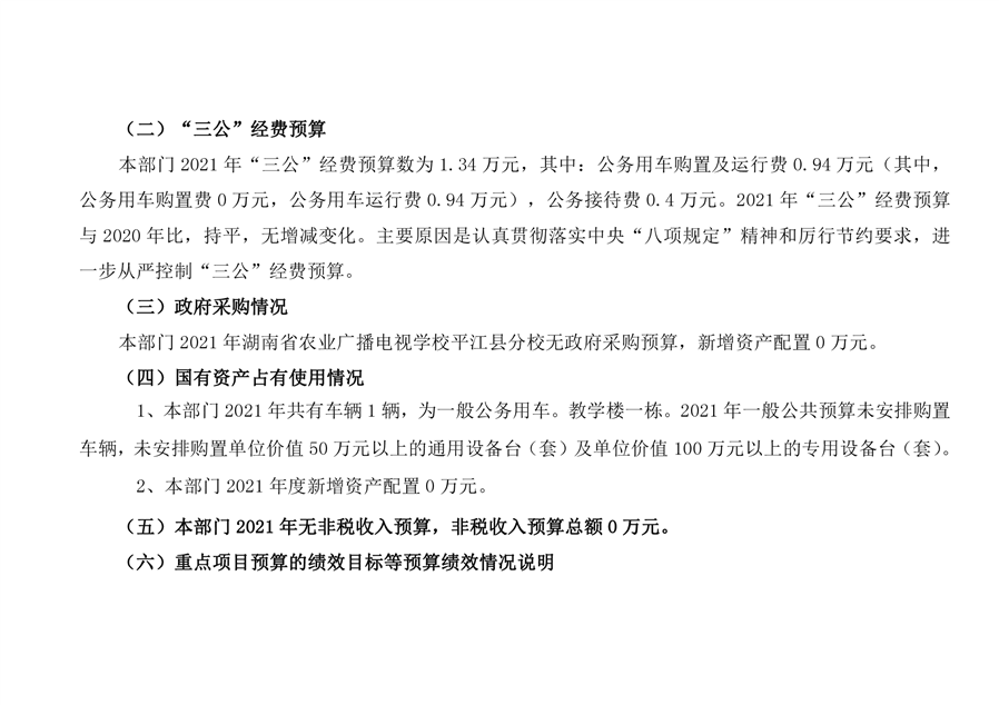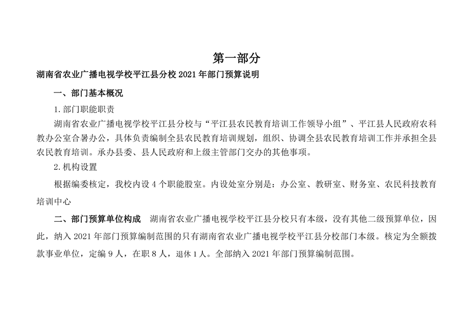 湖南省农业广播电视学校平江县分校2021年部门预算公开