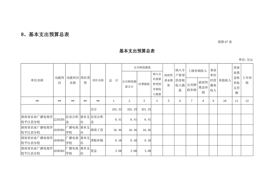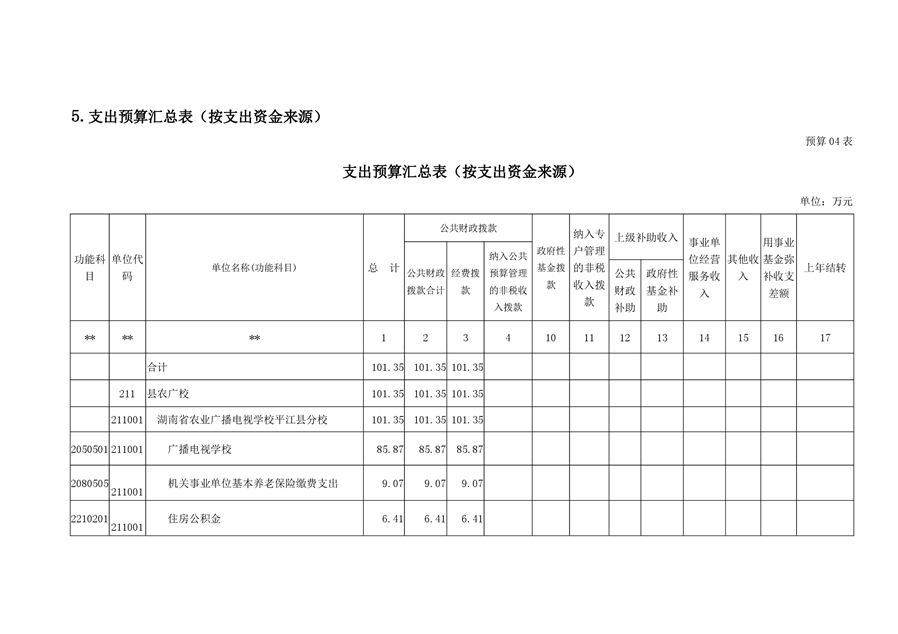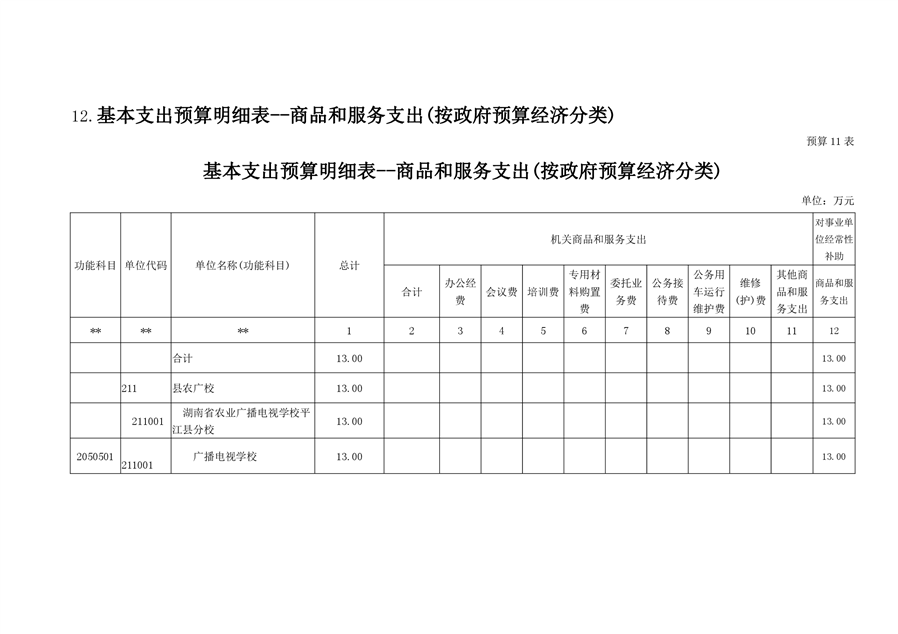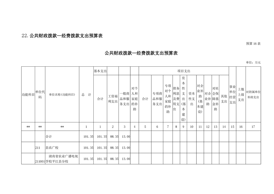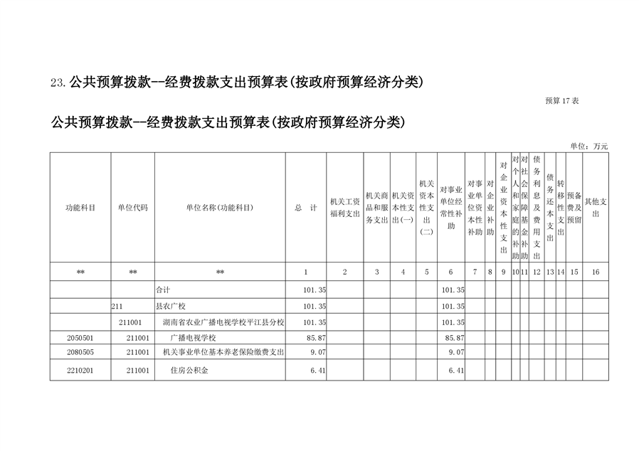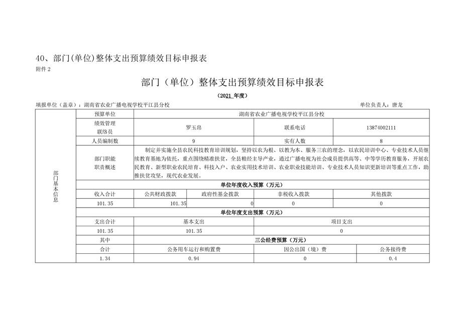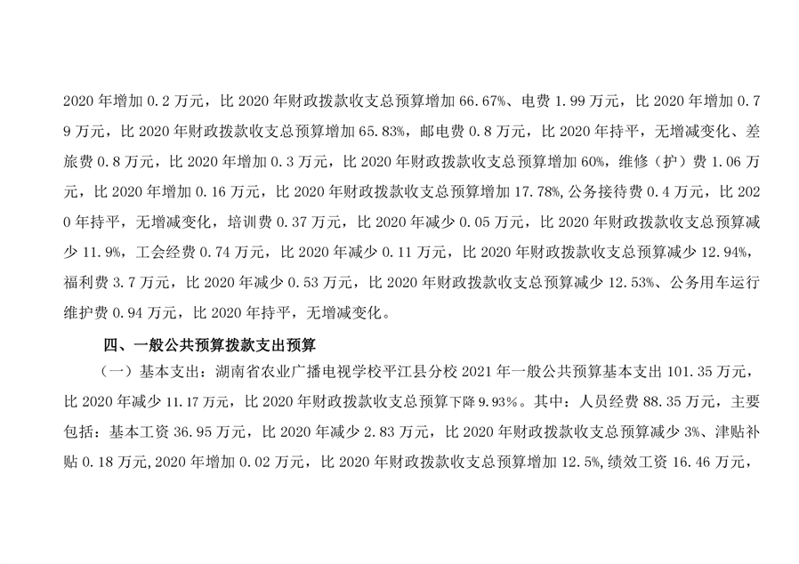 湖南省农业广播电视学校平江县分校2021年部门预算公开