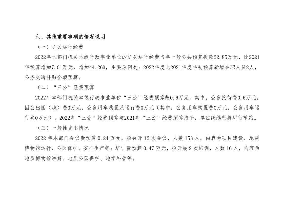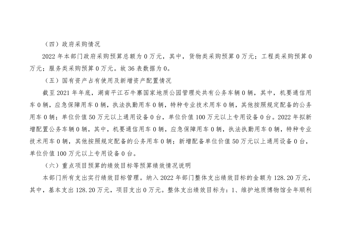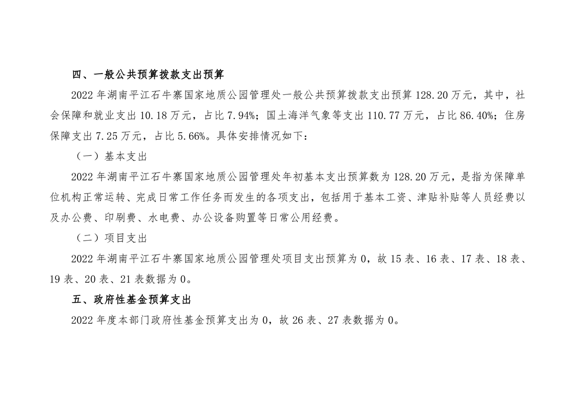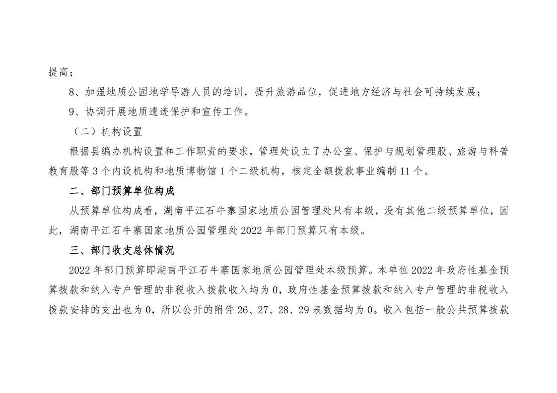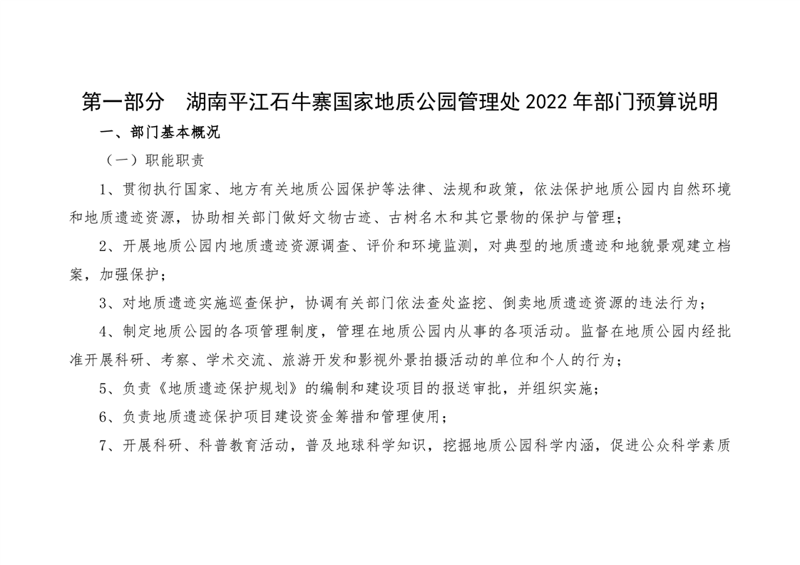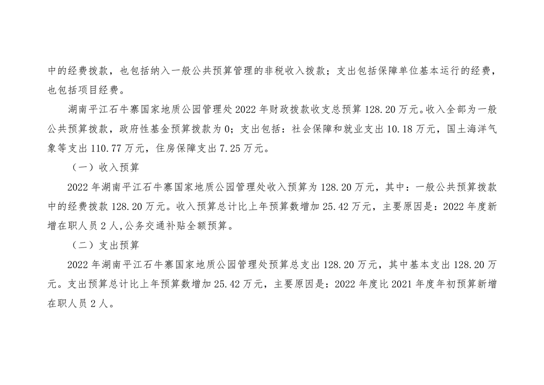 平江县石牛寨国家地质公园管理处2022年部门预算