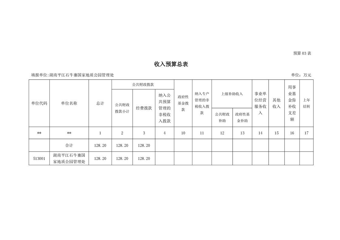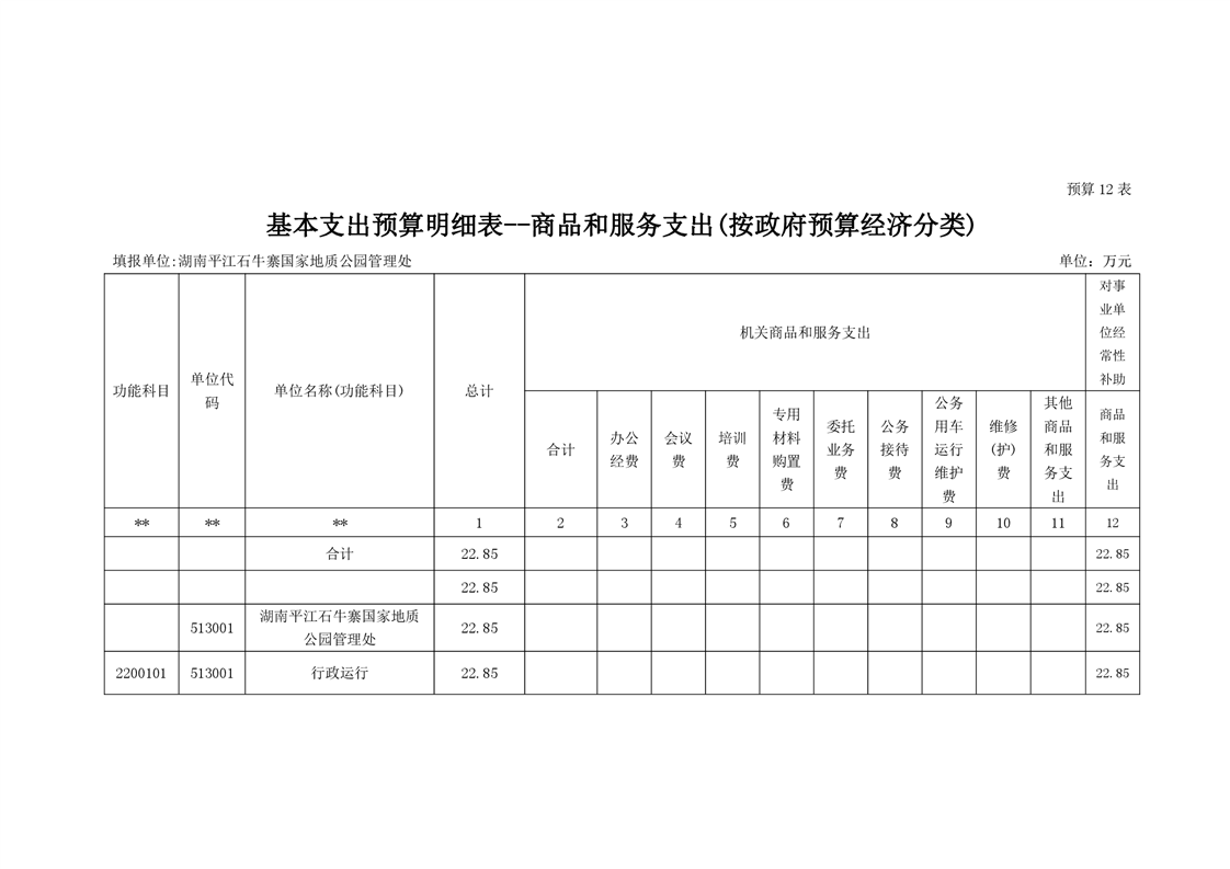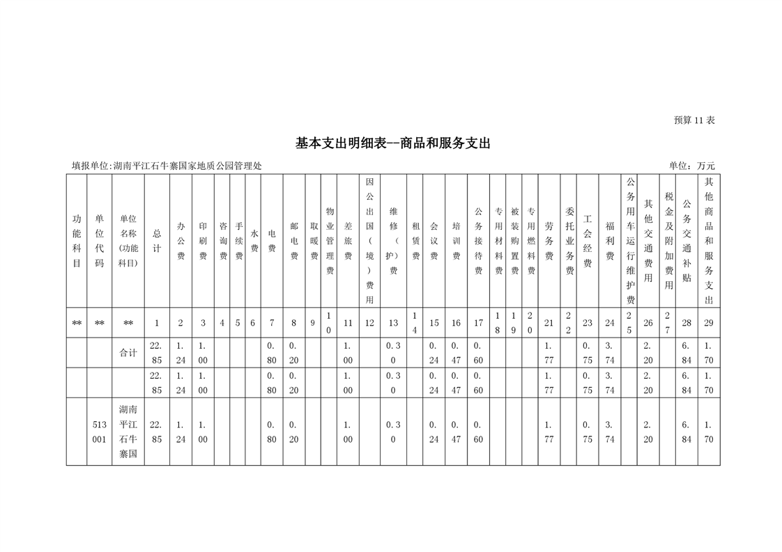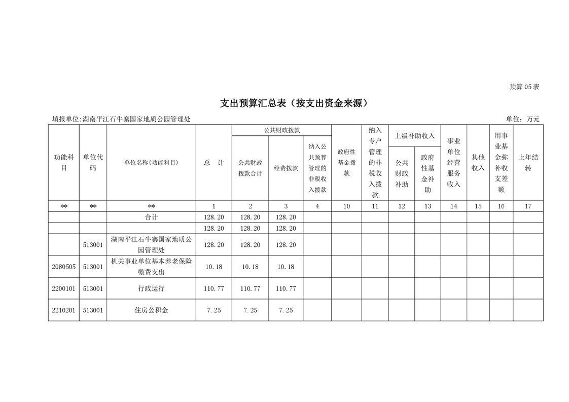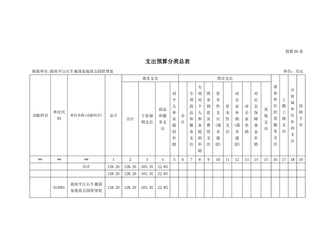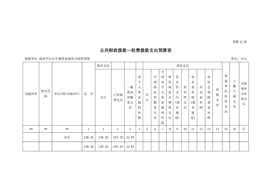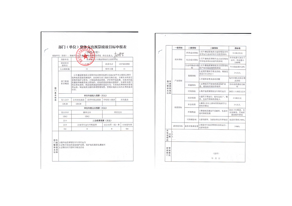 平江县石牛寨国家地质公园管理处2022年部门预算