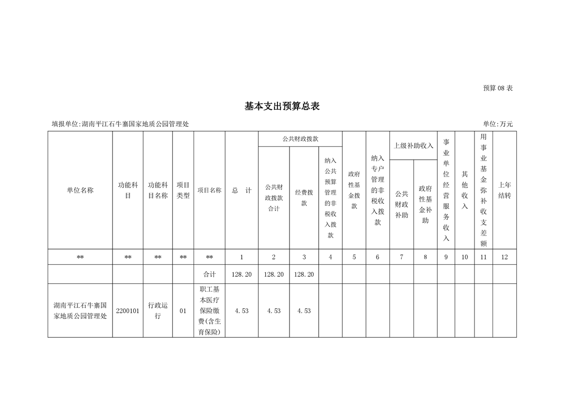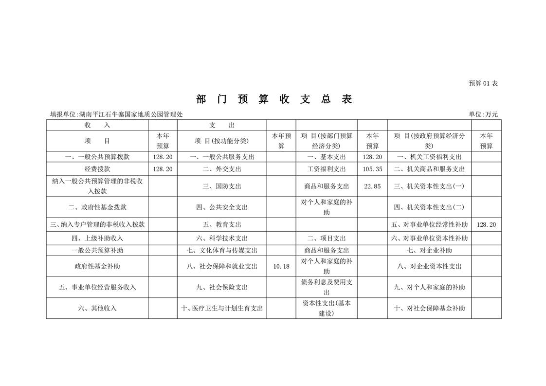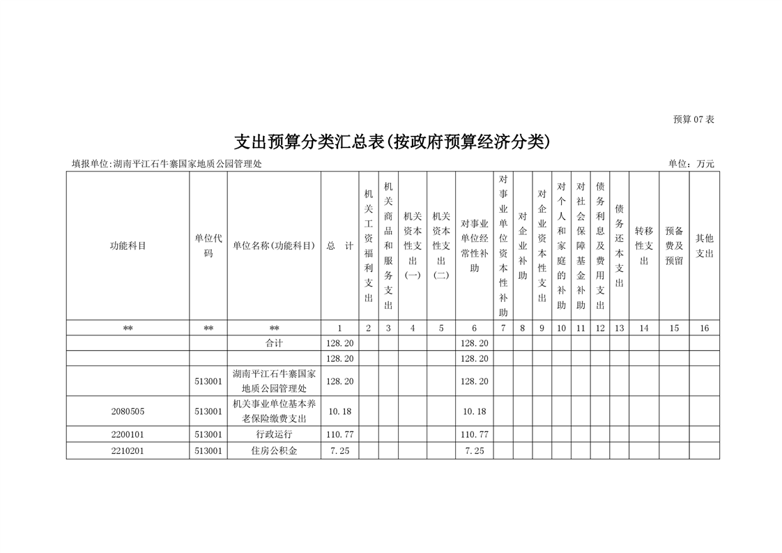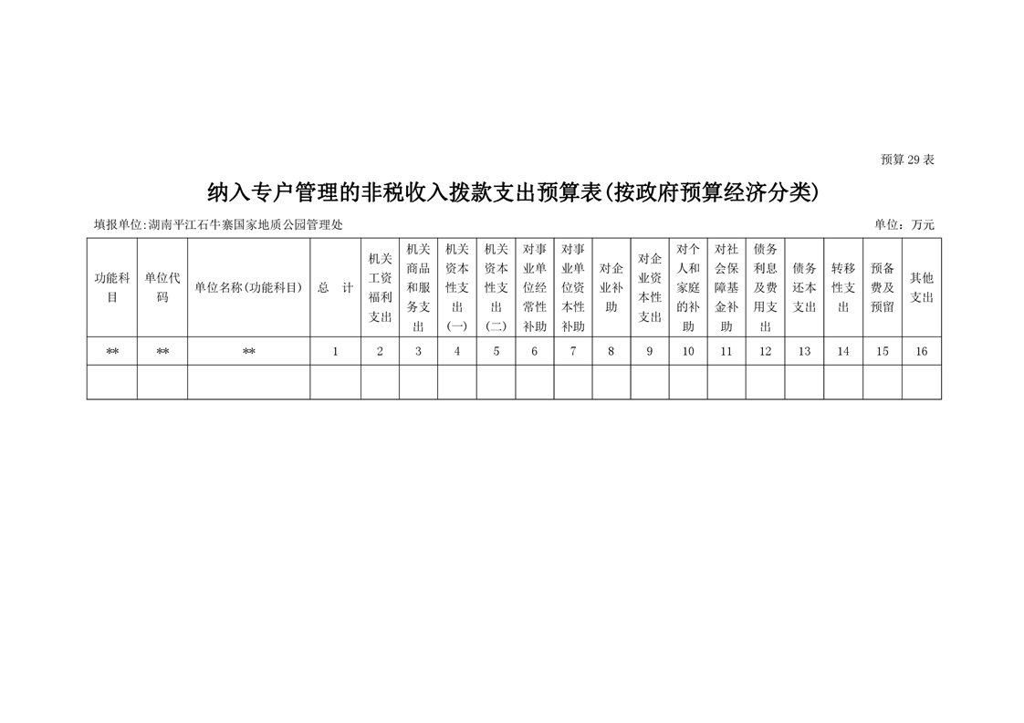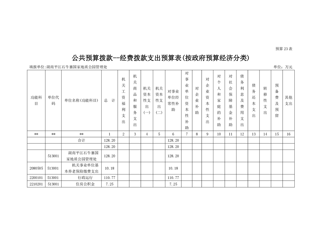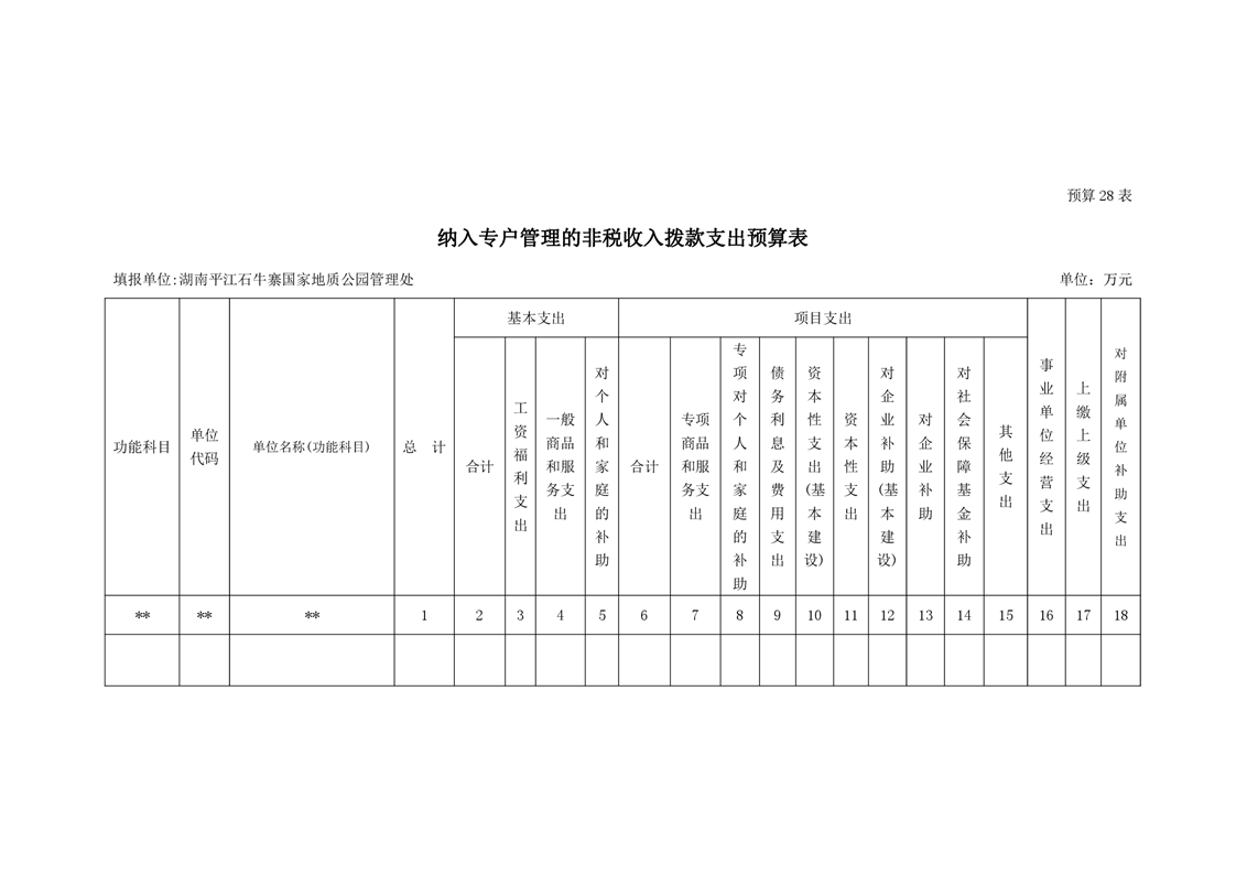 平江县石牛寨国家地质公园管理处2022年部门预算