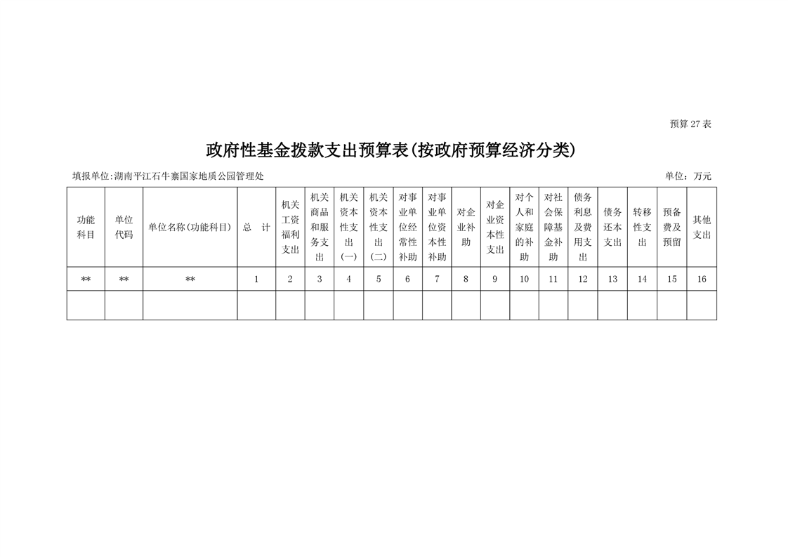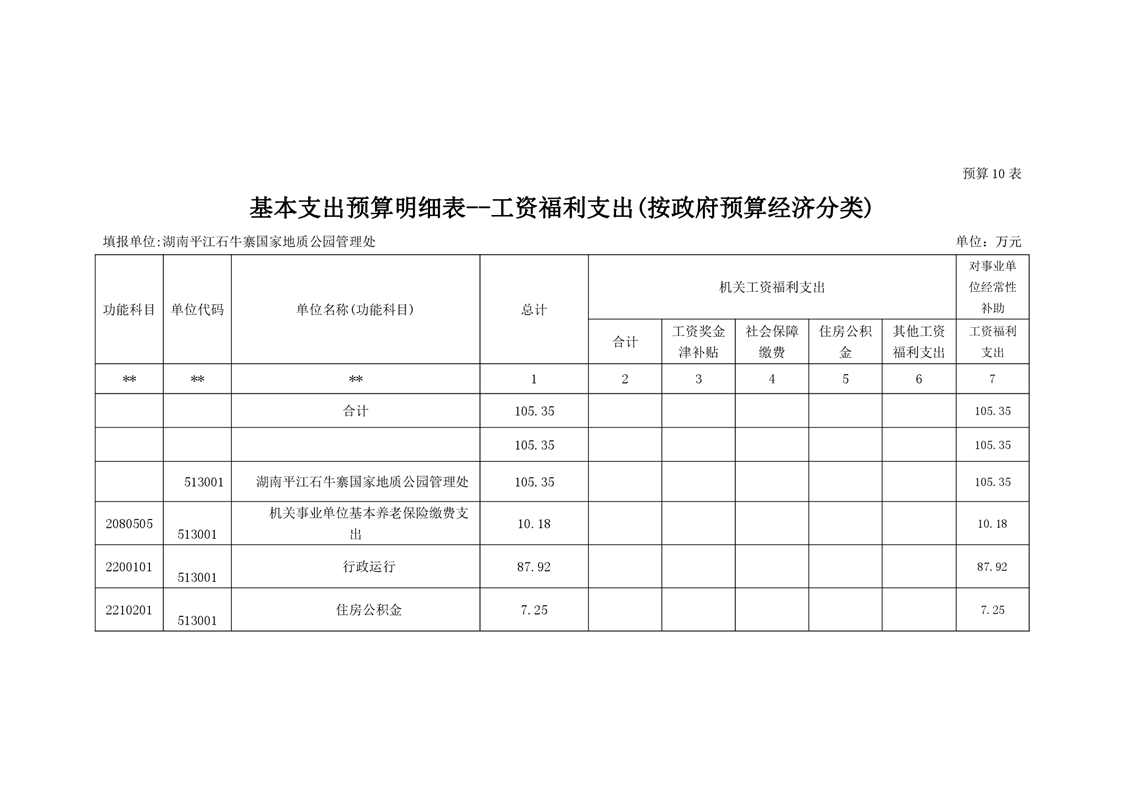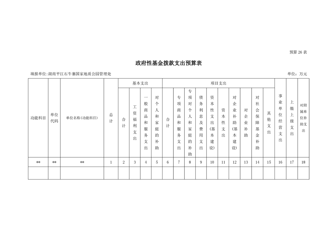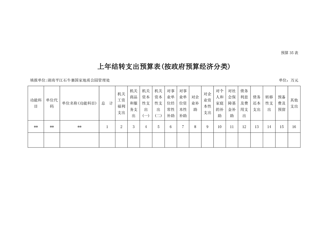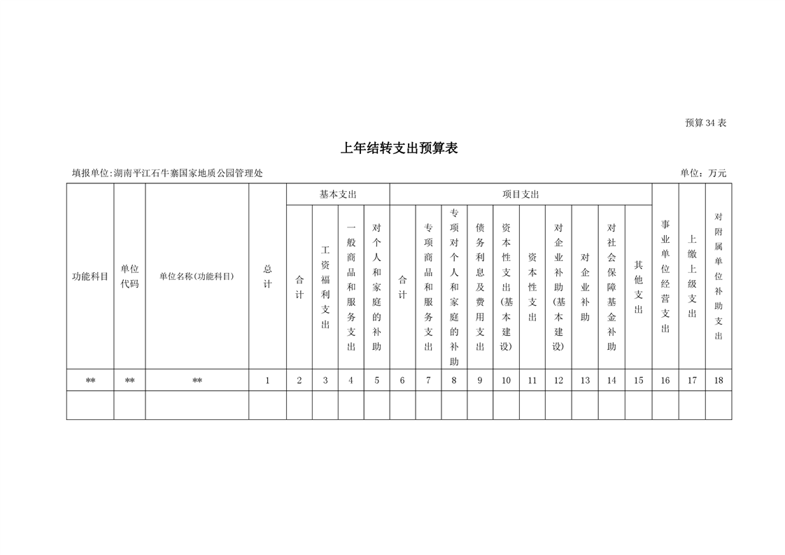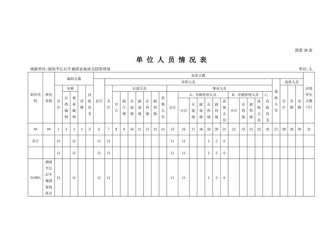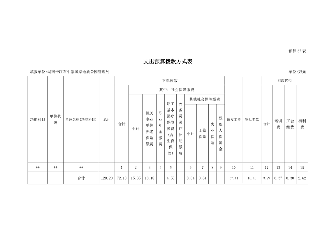 平江县石牛寨国家地质公园管理处2022年部门预算