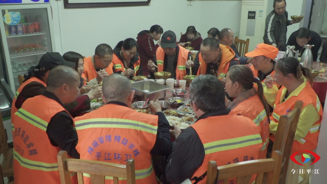11点30分左右,随着社区老人和环卫工人的有序落座,一盘盘美味可口的菜肴陆续上桌,大家一边吃着可口的饭菜,享受美食,一边拉拉家常,谈论着社区的变化,幸福感油然而生。