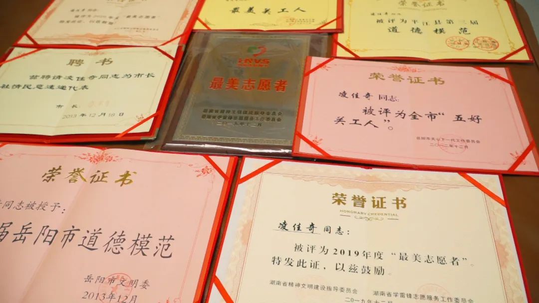 几十年来,他给贫困家庭送温暖,足迹覆盖平江各乡镇;他捐助全国各地的贫困学生多人,受助孩子都亲切称他为凌爸爸;他向灾区献爱心,积极交纳特殊党费,累计捐赠爱心款物九十多万元。凌佳奇获得了“湖南好人”、市县“道德模范”、“最美志愿者”等荣誉称号。