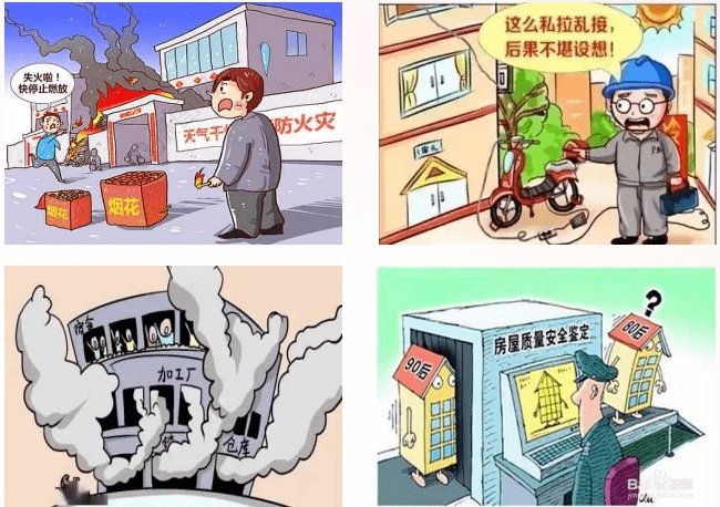 1、选址:选址不安全、未严格按照国家建筑规范建设,用水、用电、用火设置不规范
