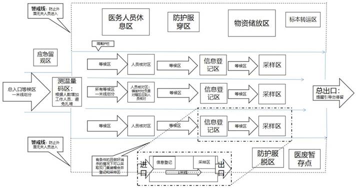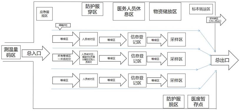 4.各采样点领队确认场地布置、设备调试、物资清点等无误后,发布启动采样命令。入口处打开,筛查正式开始。