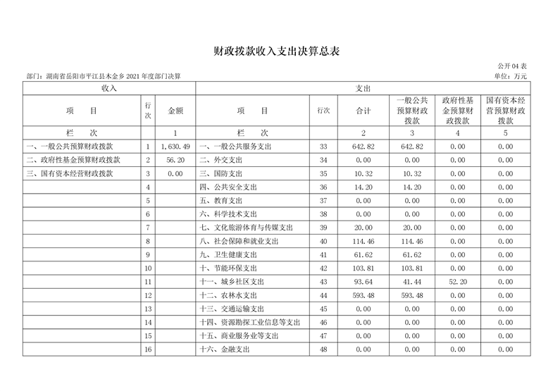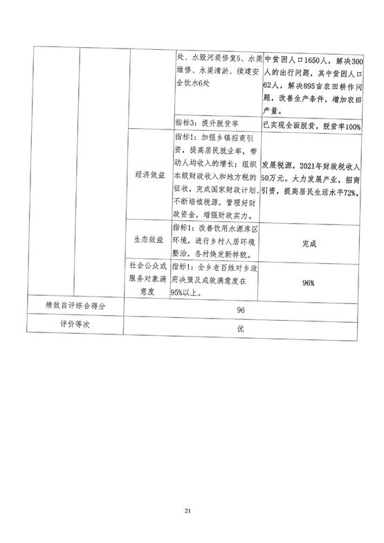 2021年度平江县木金乡人民政府部门决算及整体绩效目标评价表