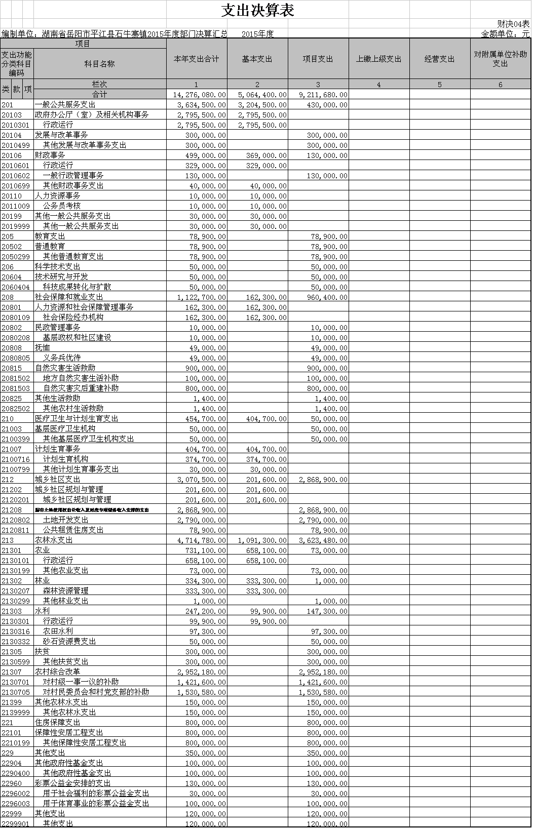 附件三:支出决算表-财决04表