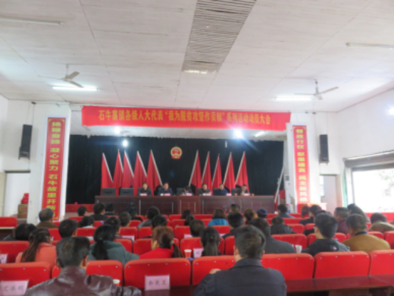 3月14日上午,石牛寨镇召开各级人大代表“我为脱贫攻坚作贡献“系列活动动员大会,市、县、镇三级人大代表共计56人参会。