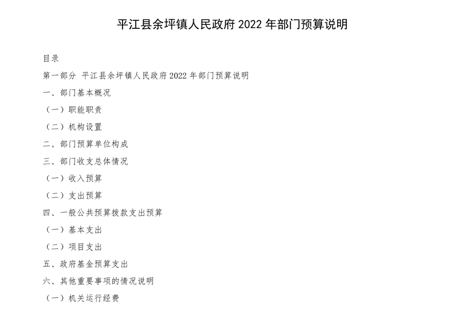 平江县余坪镇人民政府 2022 年部门预算编报说明