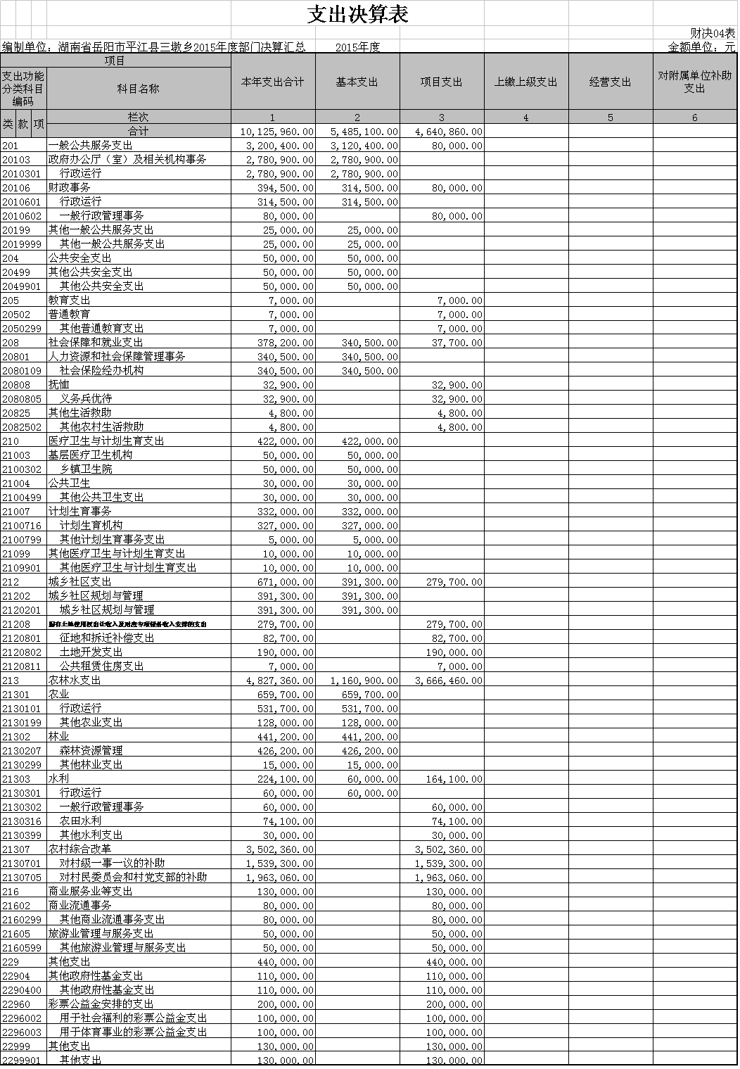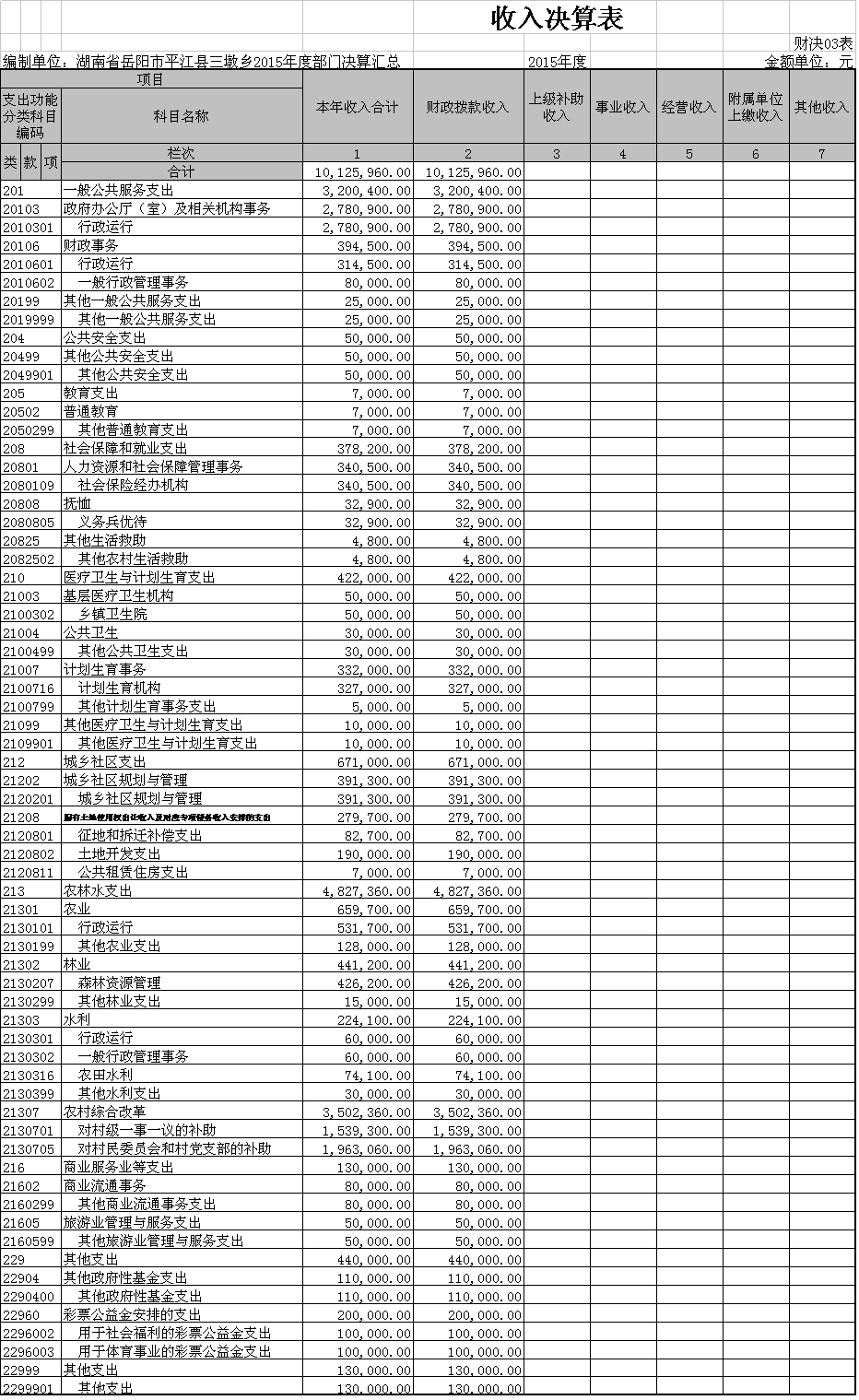 我单位共有在职干部职工64人,2015年全年经费预算数为592.14万元,决算数为1012.596万元,当年财政收支平衡。
