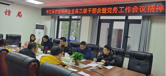 同时,会议还传达了全县三级干部会议、全县党务工作会议精神,学习了全市2023年度信访工作目标管理考核方案,研究了2023年度信访工作思路。