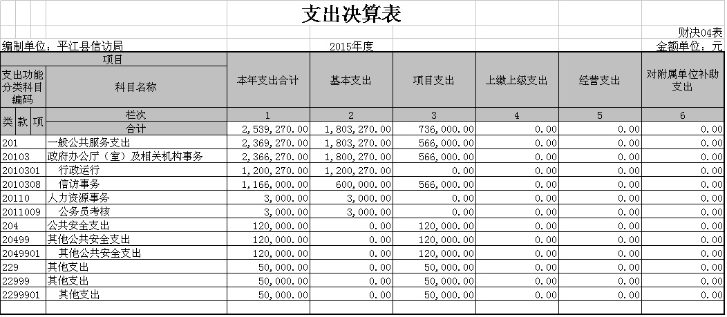 决算总支出2539270元,其中:基本支出1803270元其中(人员经费支出 1269354元,日常公用经费支出533916元),项目支出736000元。