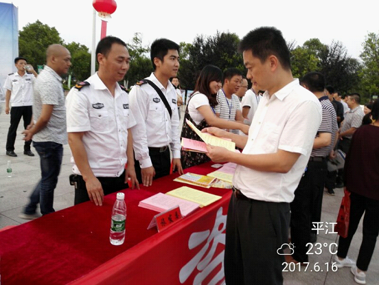 2017年6月16日是全国第16个安全宣传月宣传咨询日,由平江县人民政府安委会组织的以“全面落实企业安全生产主体责任”为主题的大型安全生产宣传活动在天岳广场举行,平江县旅游发展委员会参加了此次活动。