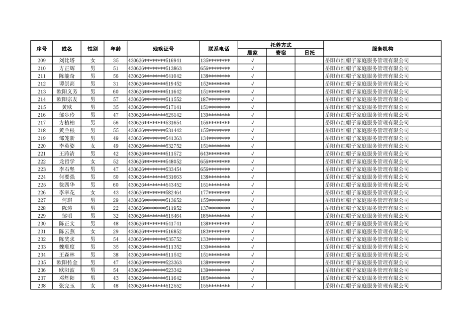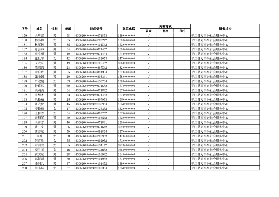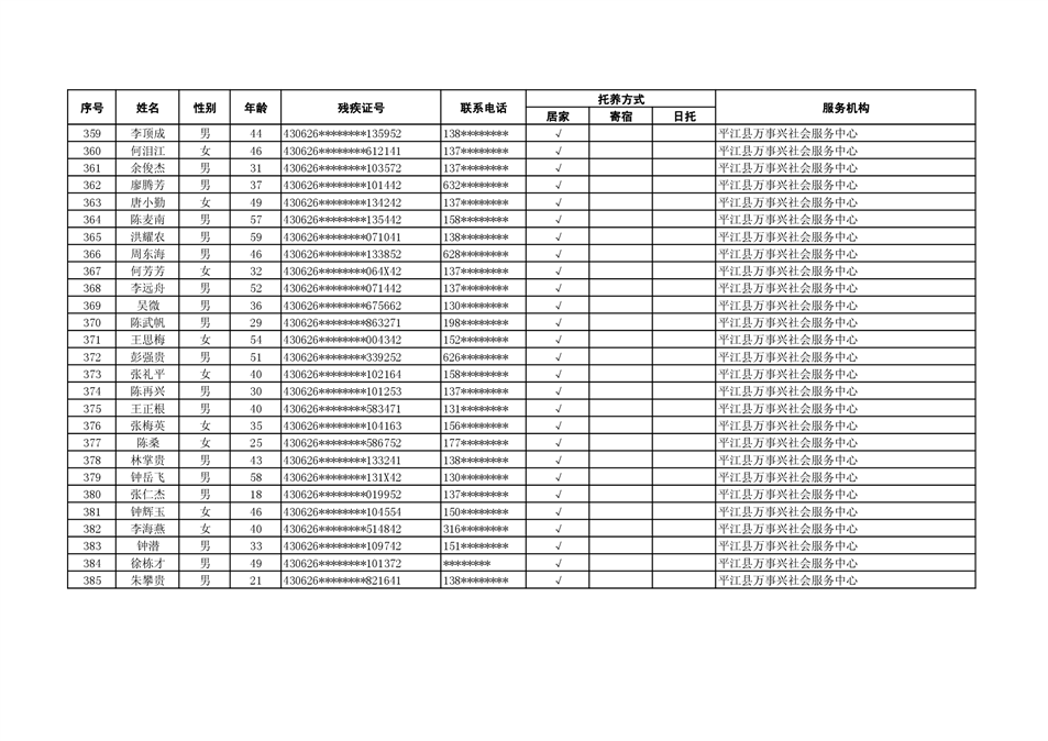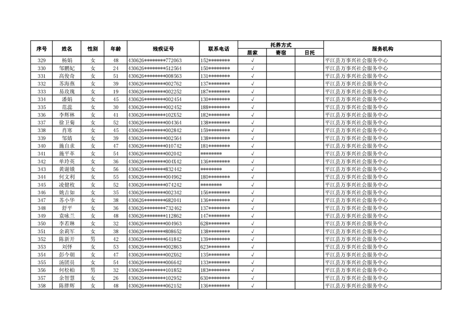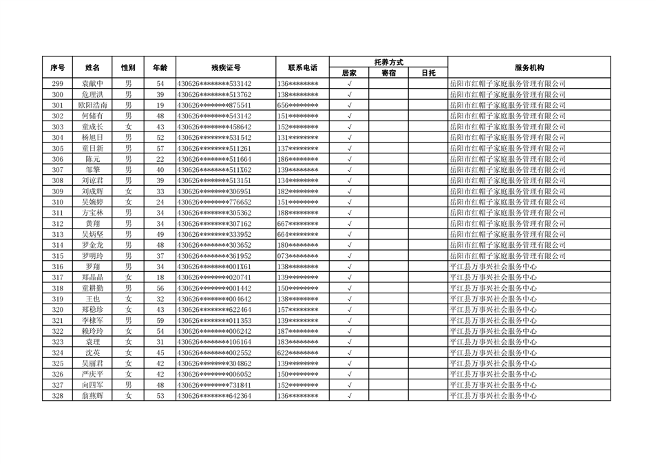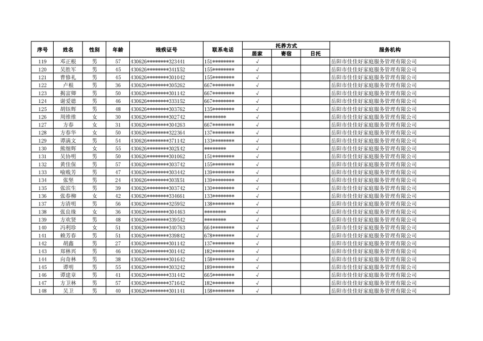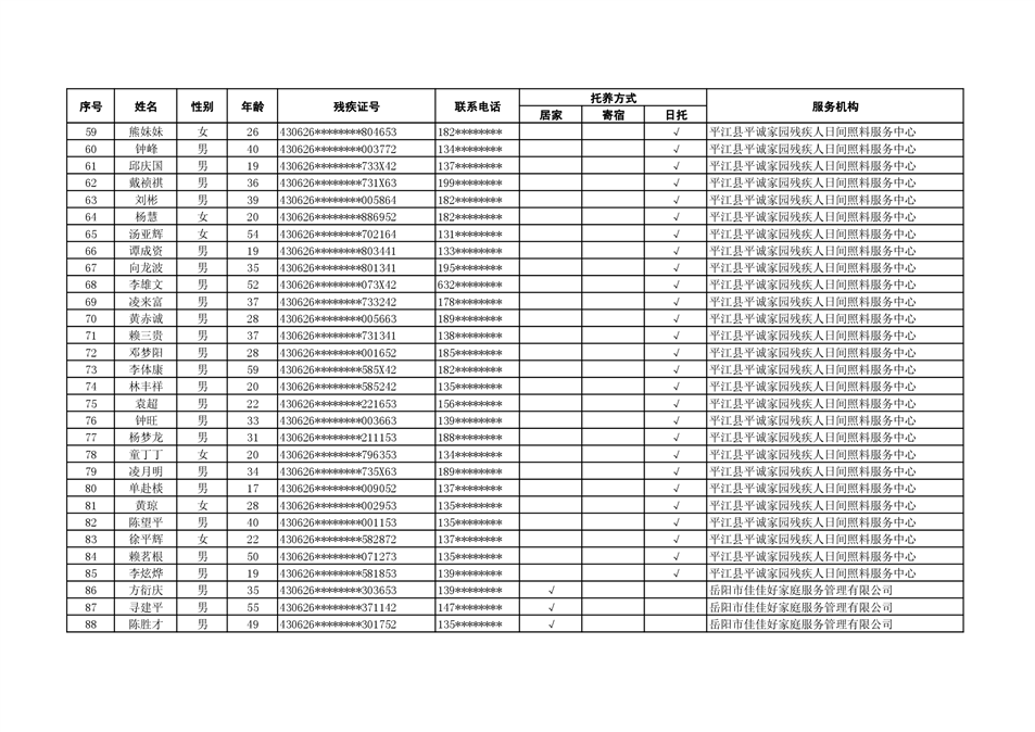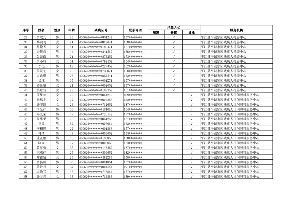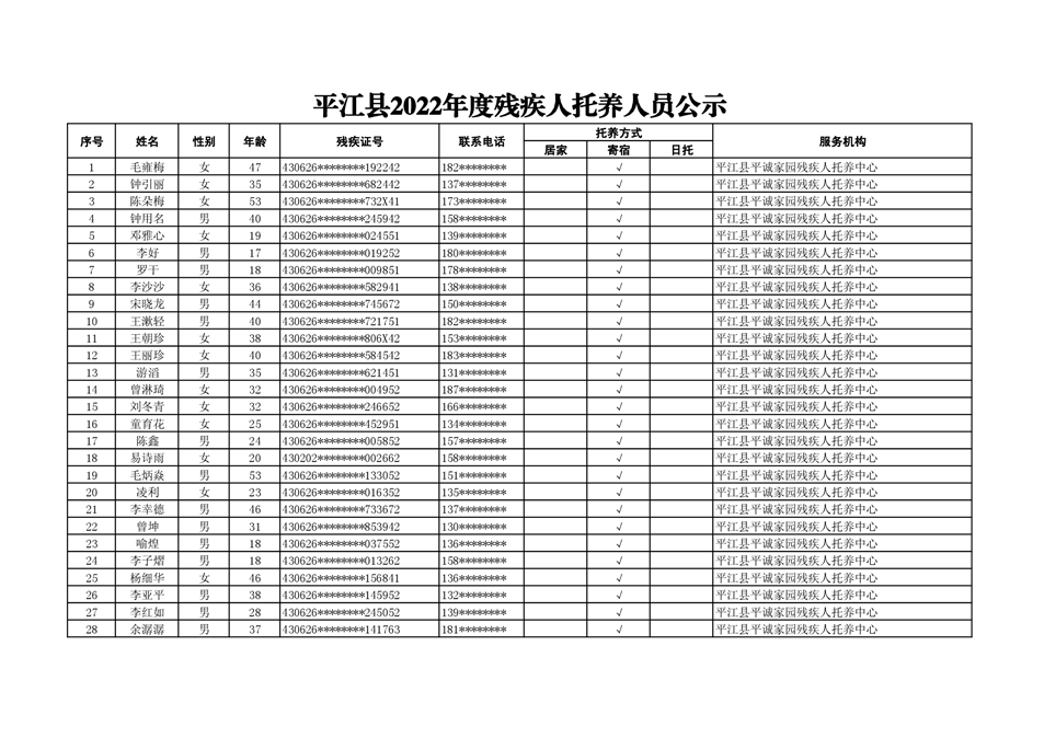 2022年度残疾人托养人员公示