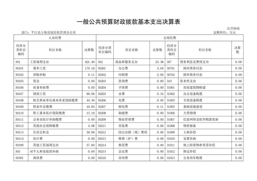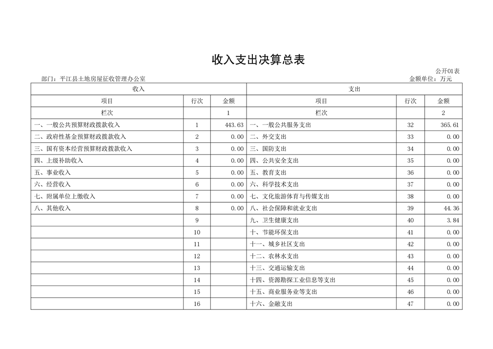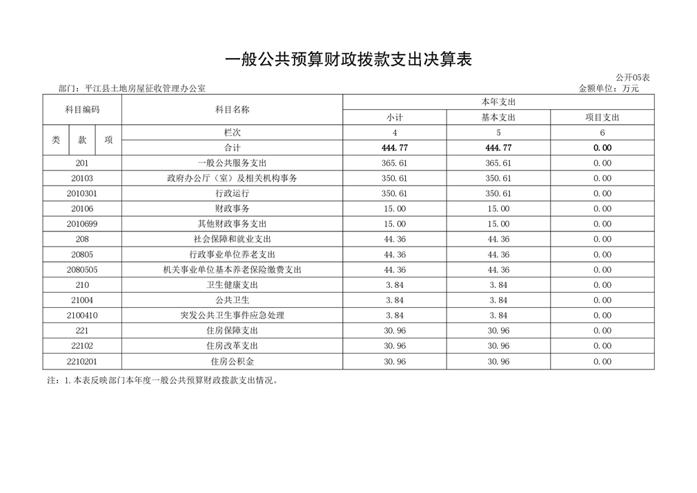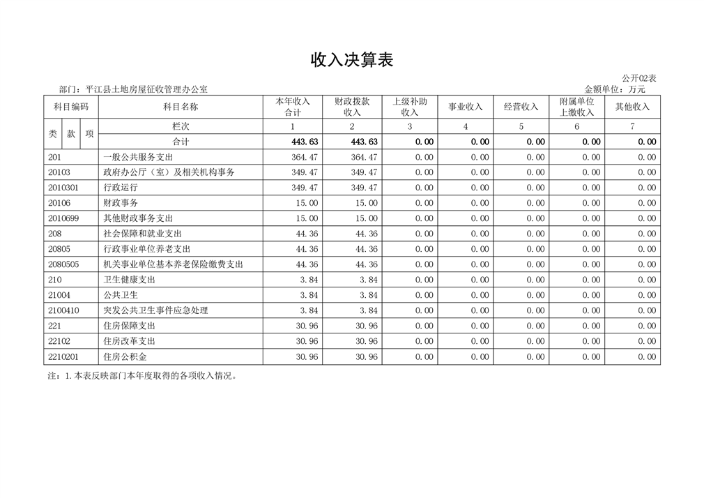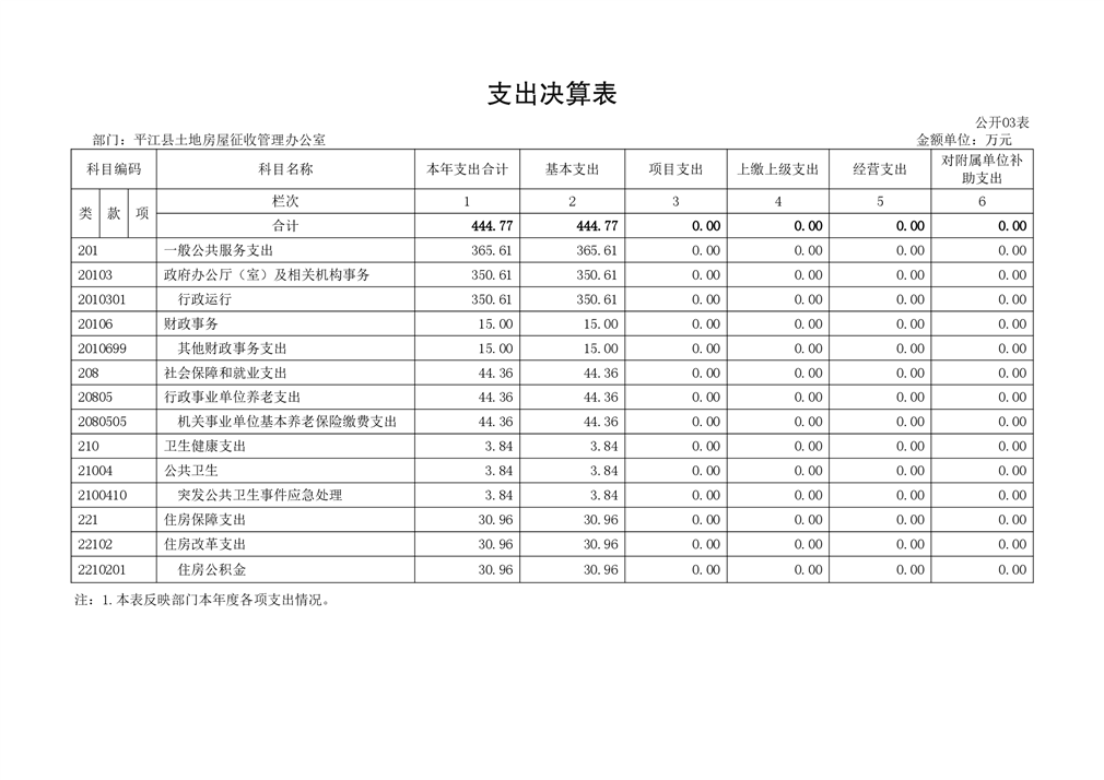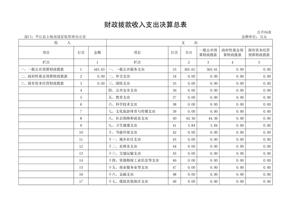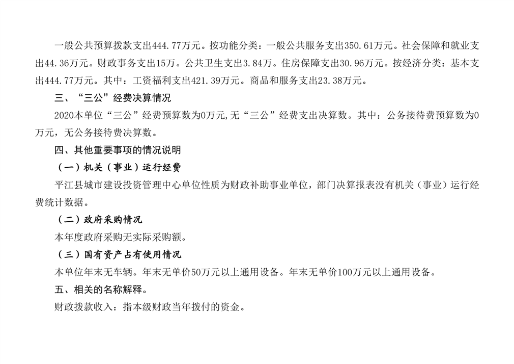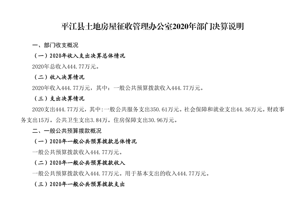 平江县土地房屋征收管理办公室2020年部门决算说明
