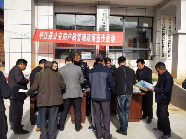 11月1日,人口与出入境管理大队大队长向群平带领大队民警在梅仙镇哲寮村、南江镇板江乡进行户政管理政策宣传以及外国人管理法律政策宣传活动。