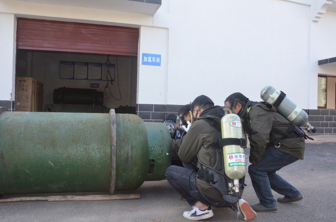 初冬天气暖,小似立春时。为确保公司各水厂生产生活安全,提升公司应急队伍突发事件救援处置能力,11月22日下午,县自来水公司组织司属相关部门40余人在城关水厂开展液氯泄漏事故应急救援演练。