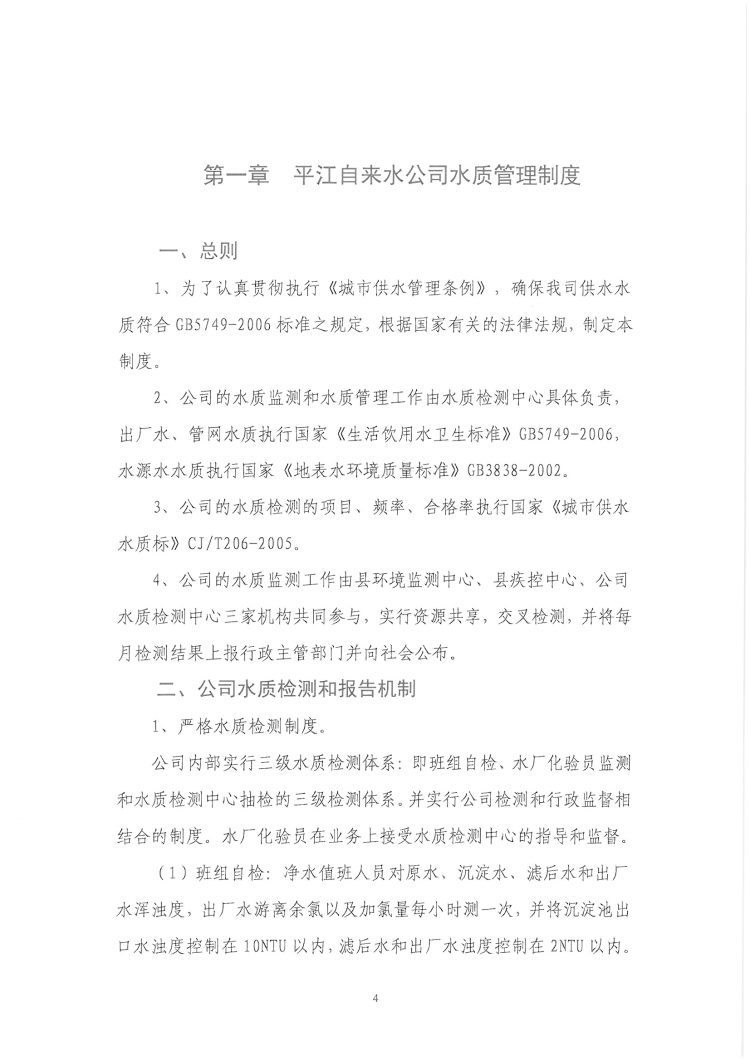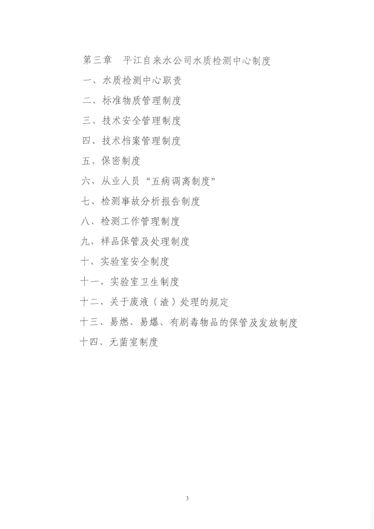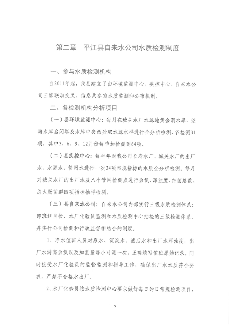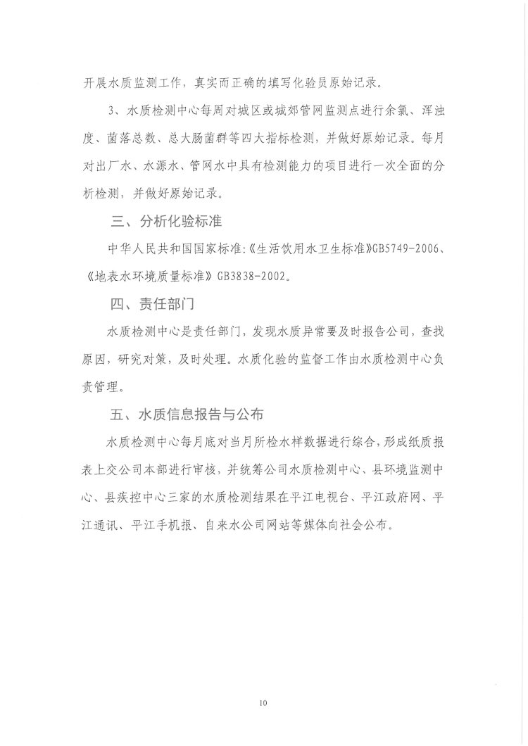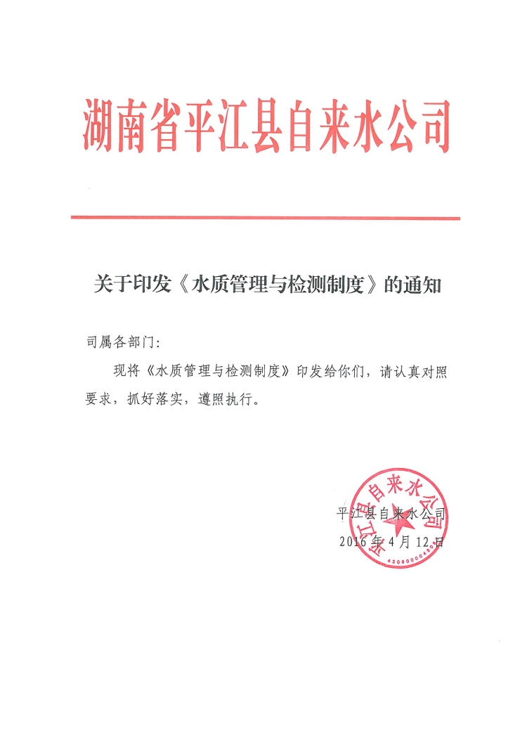 平江县自来水公司《关于印发水质管理与检测制度的通知》