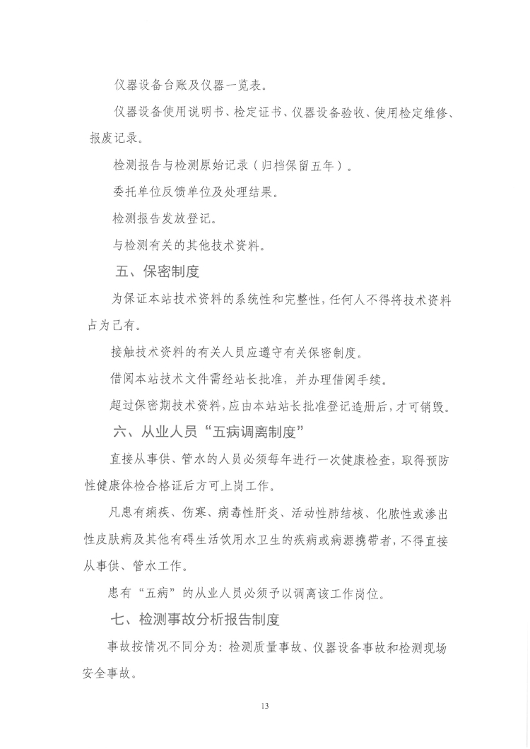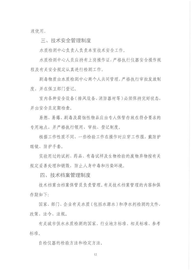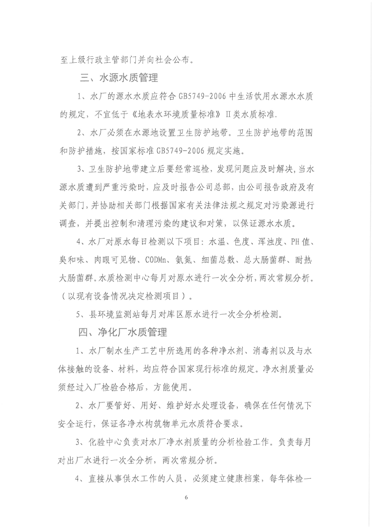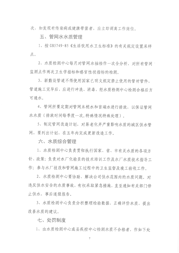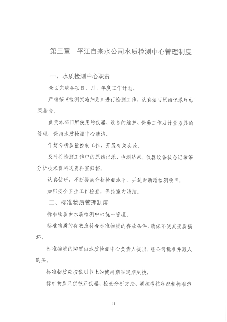 平江县自来水公司《关于印发水质管理与检测制度的通知》