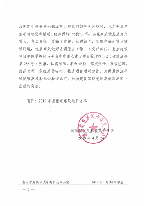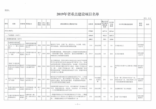 关于公布2019年省重点建设项目名单的通知