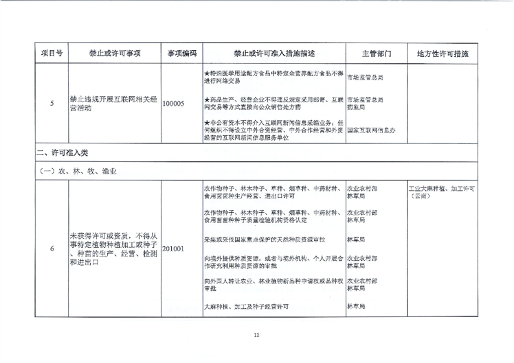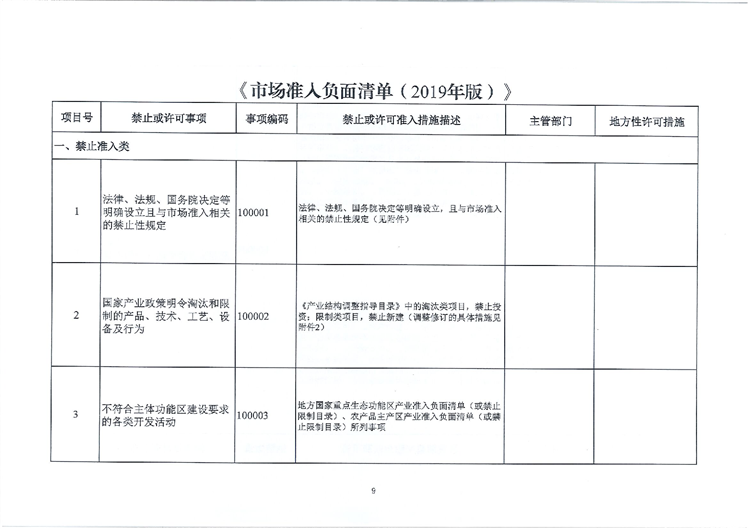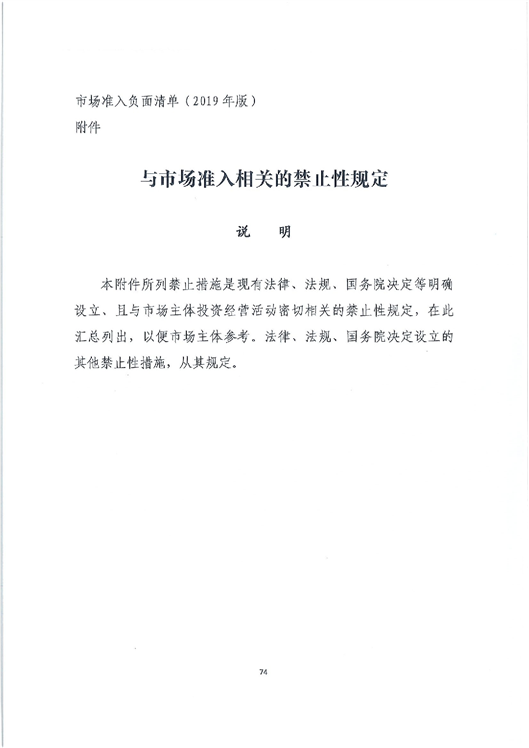 关于转发市场准入负面清单(2019版)的通知