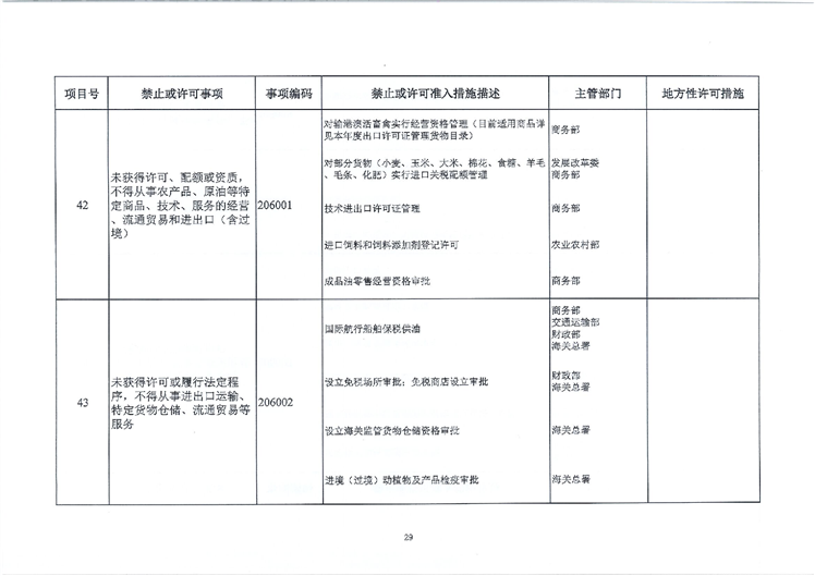 负面清单