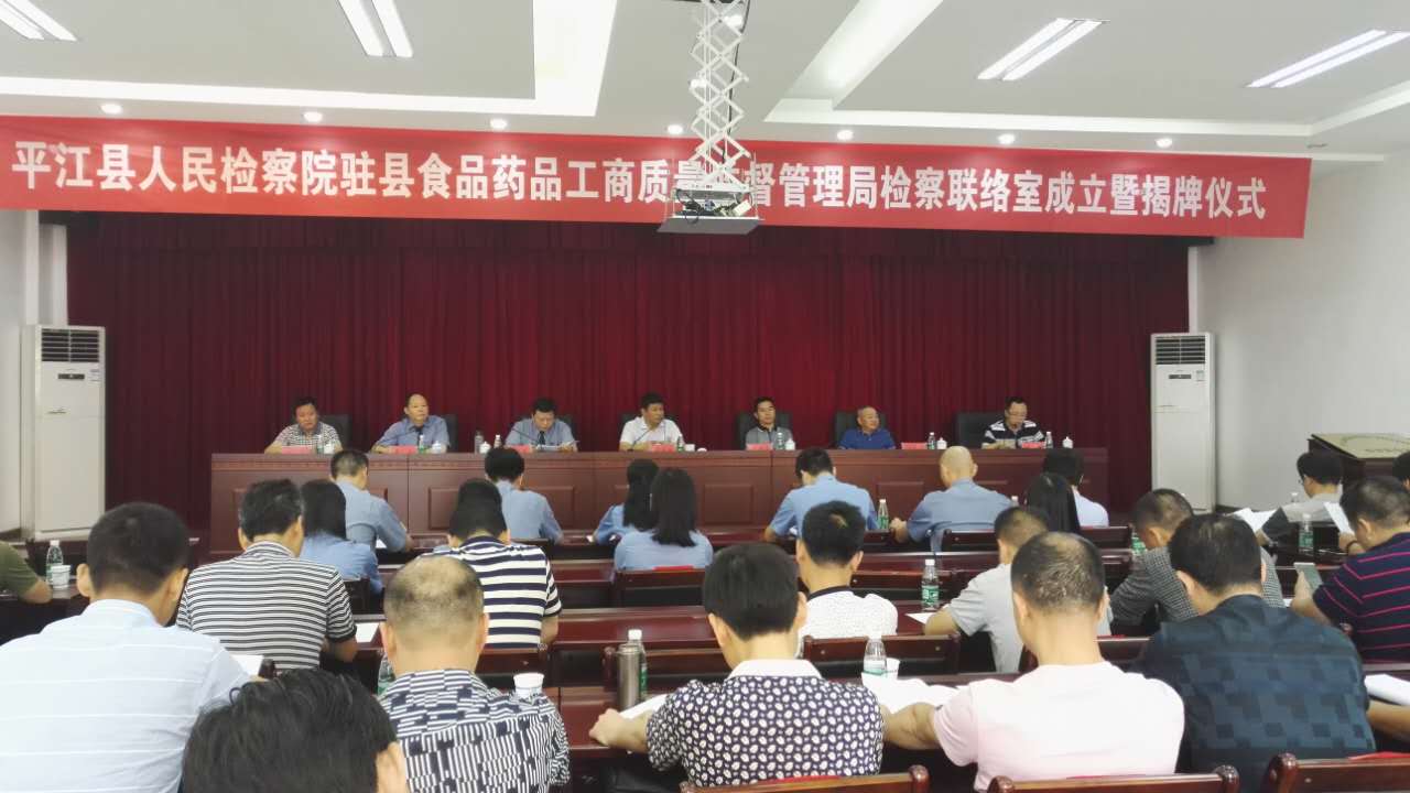 6月21日,县人民检察院驻县食品药品工商质量监督管理局检察联络室正式成立。县委常委、政法委书记周虎光,县人民政府副县长魏移宗,县检察院检察长黄利军,县食药工商质监局局长何昌美出席揭牌仪式。县检察院诉讼局全体干警、县食药工商质监局相关股室所负责人参加揭牌仪式。