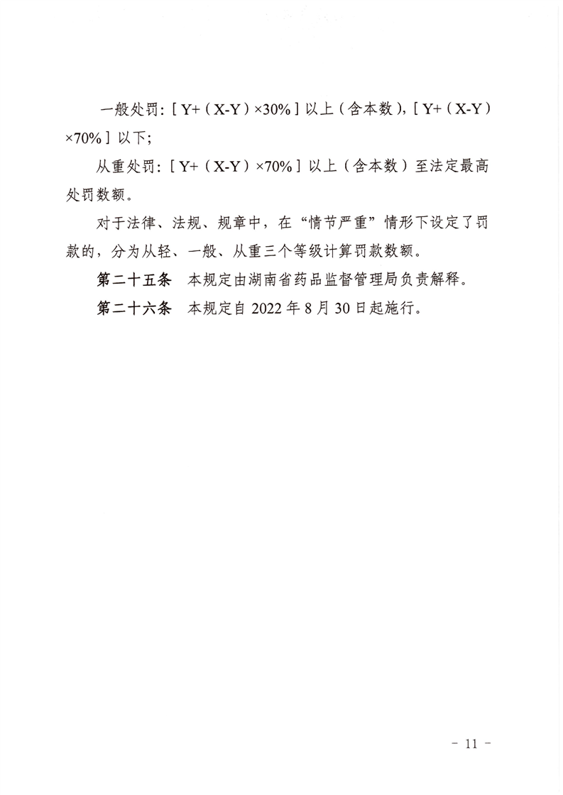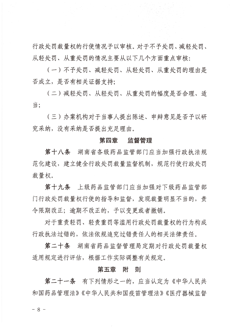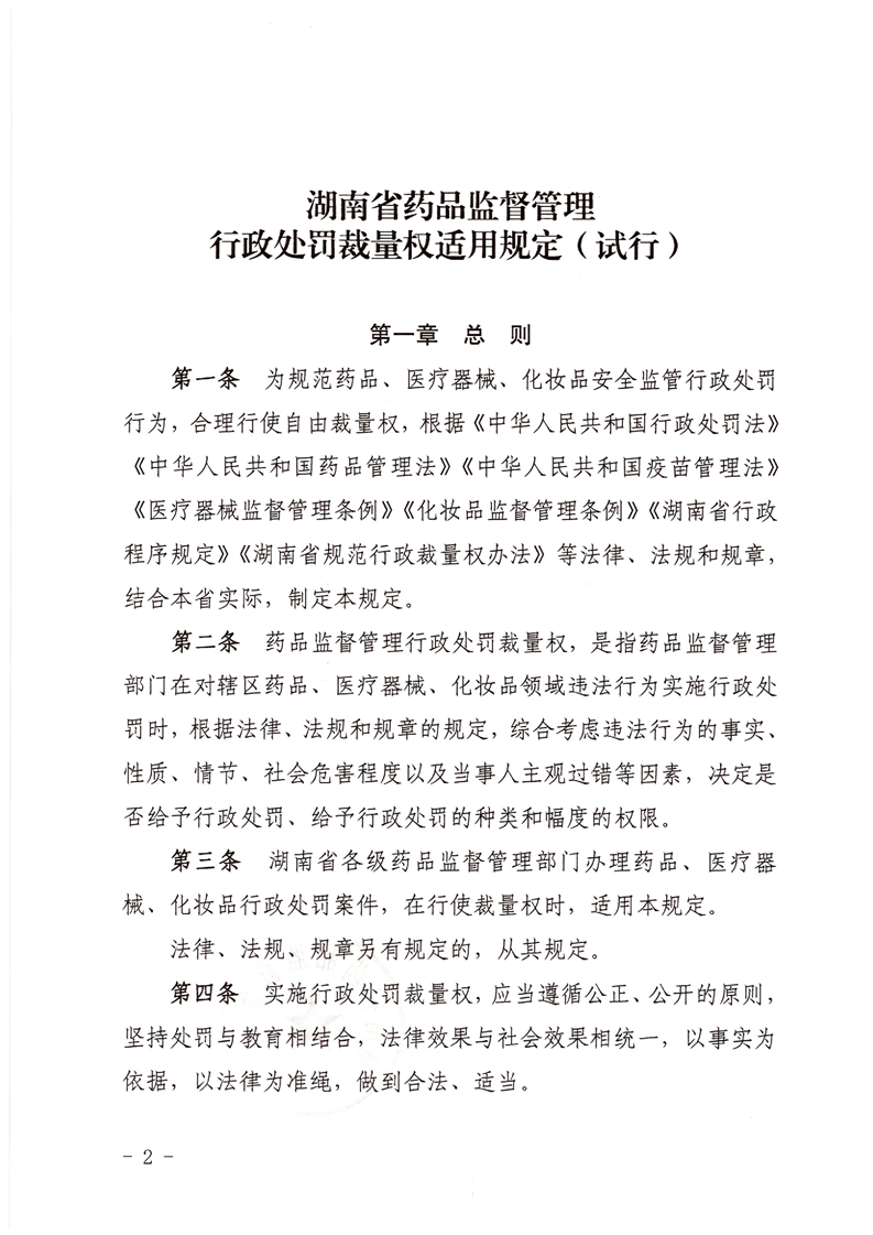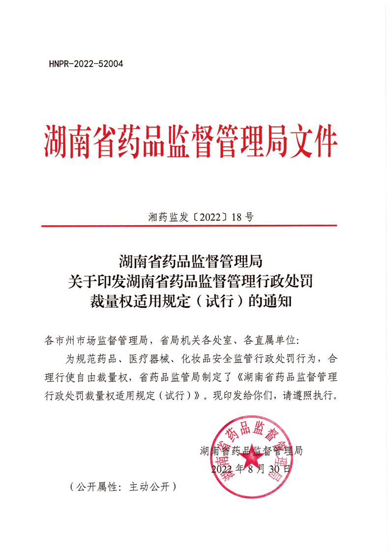 湖南省药品监督管理局关于印发湖南省药品监督管理行政处罚裁量权适用规定(试行)的通知