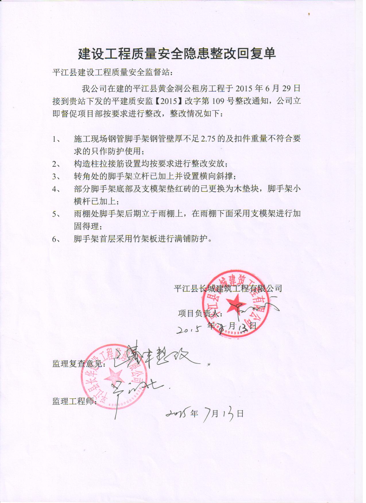 经检查,你单位承建的 黄金洞公租房 工程存在下列质量安全隐患: