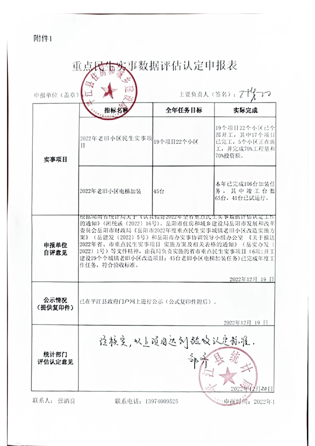 重点民生实事数据评估认定申请表(实事项目:2022年老旧小区改造、2022年老旧小区电梯加装)