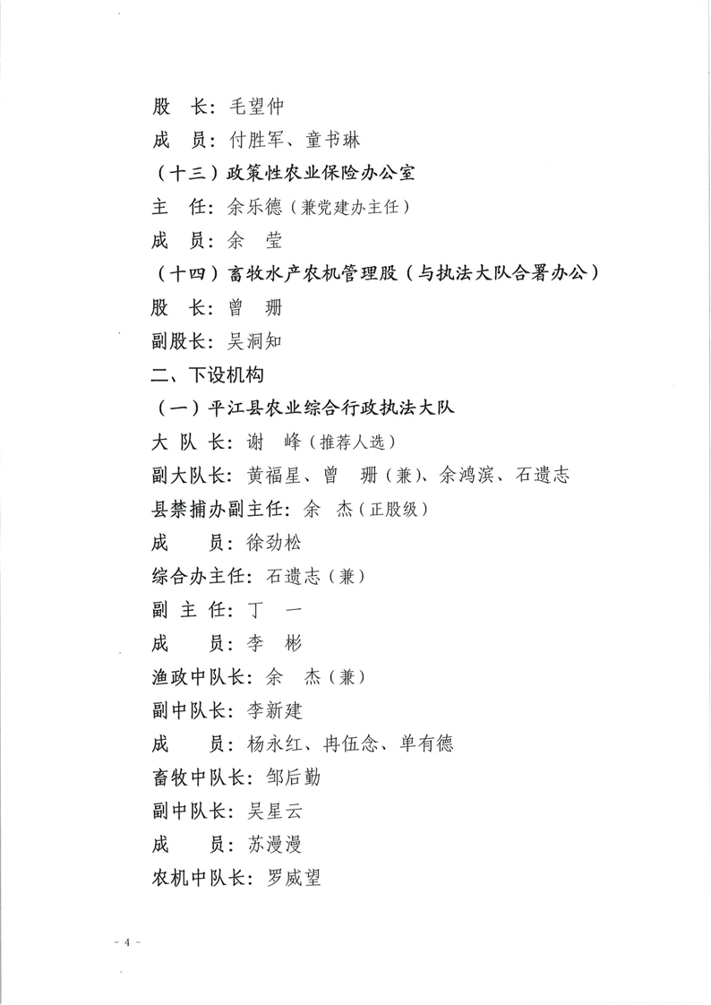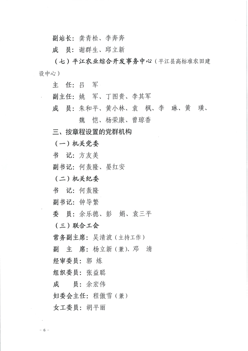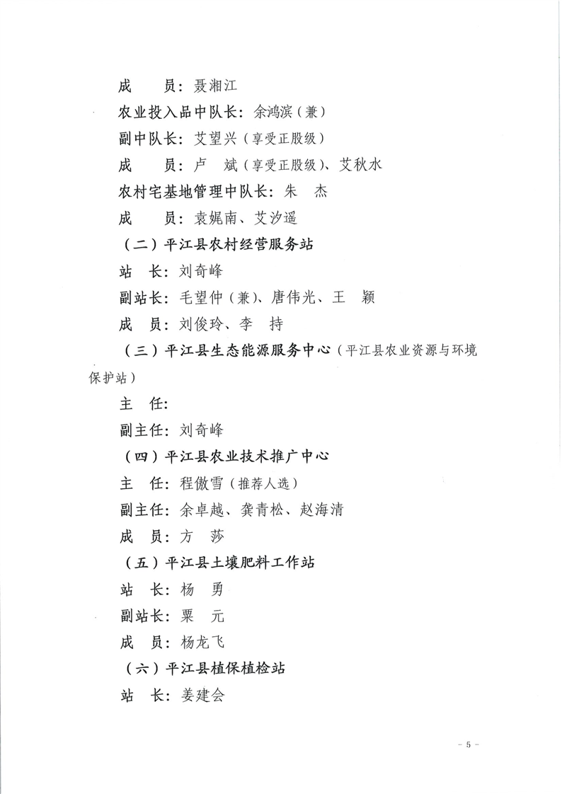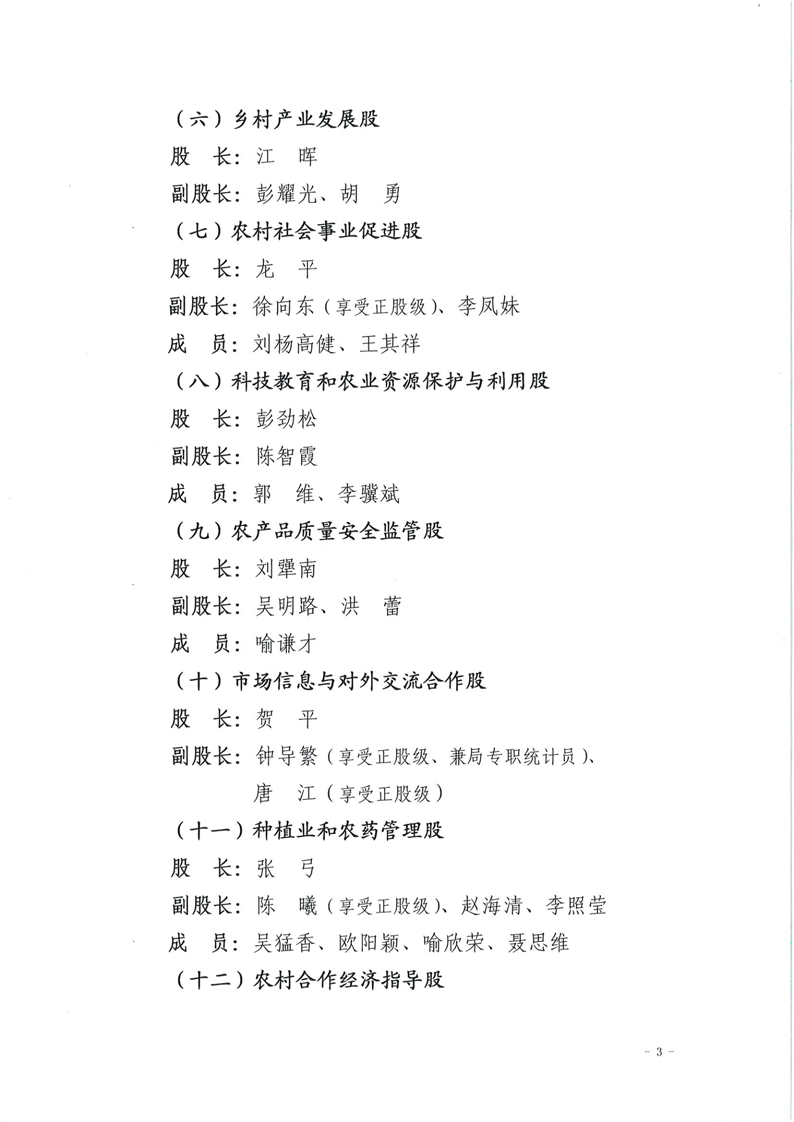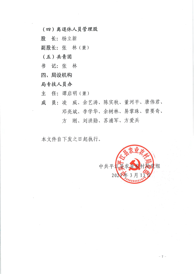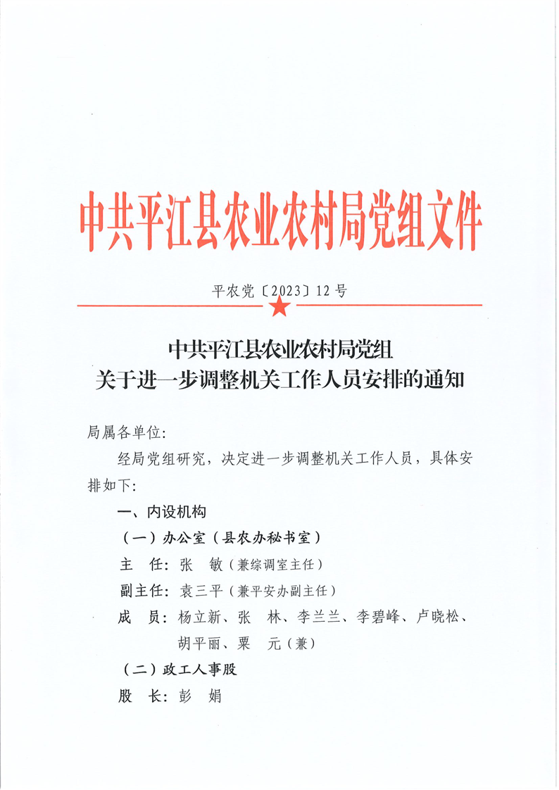 中共平江县农业农村局党组关于进一步调整机关工作人员安排的通知