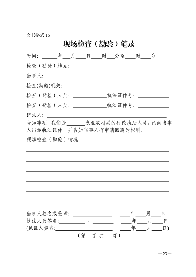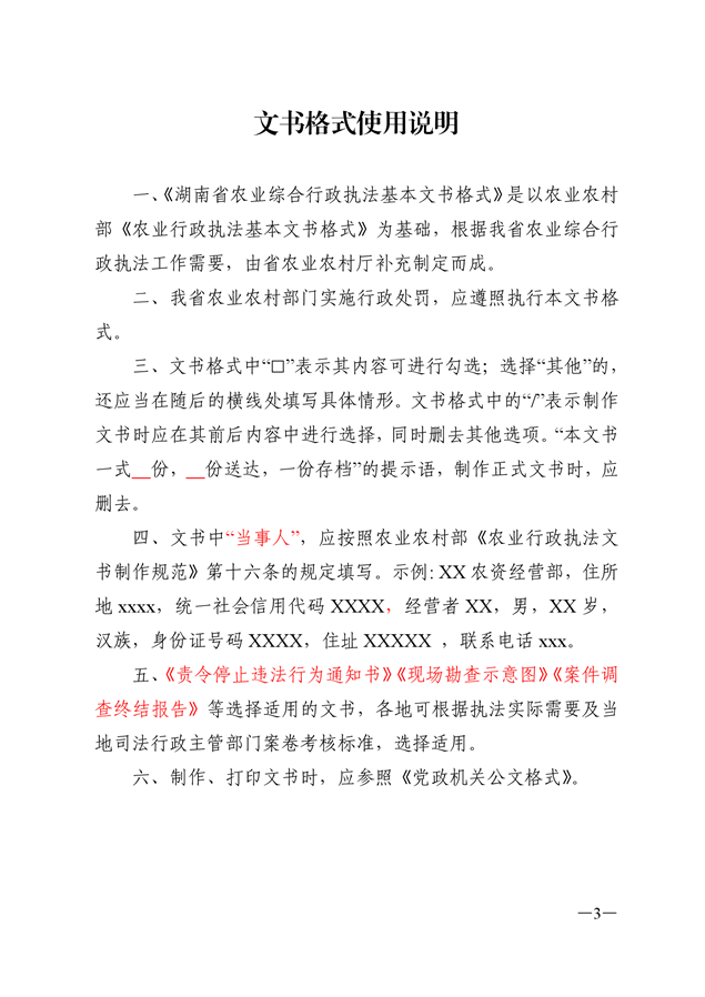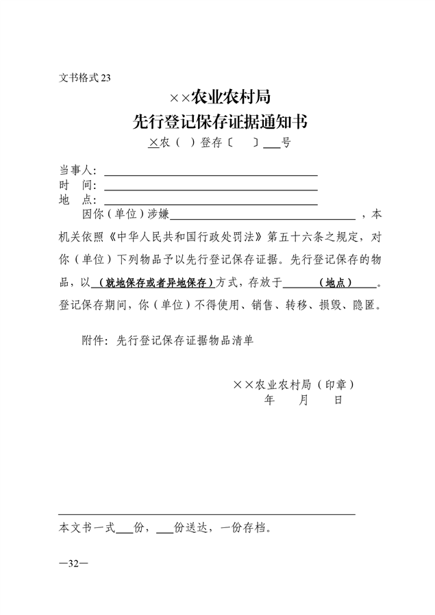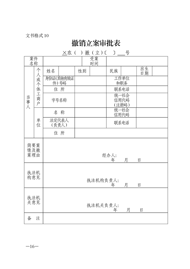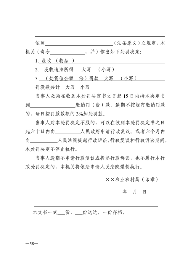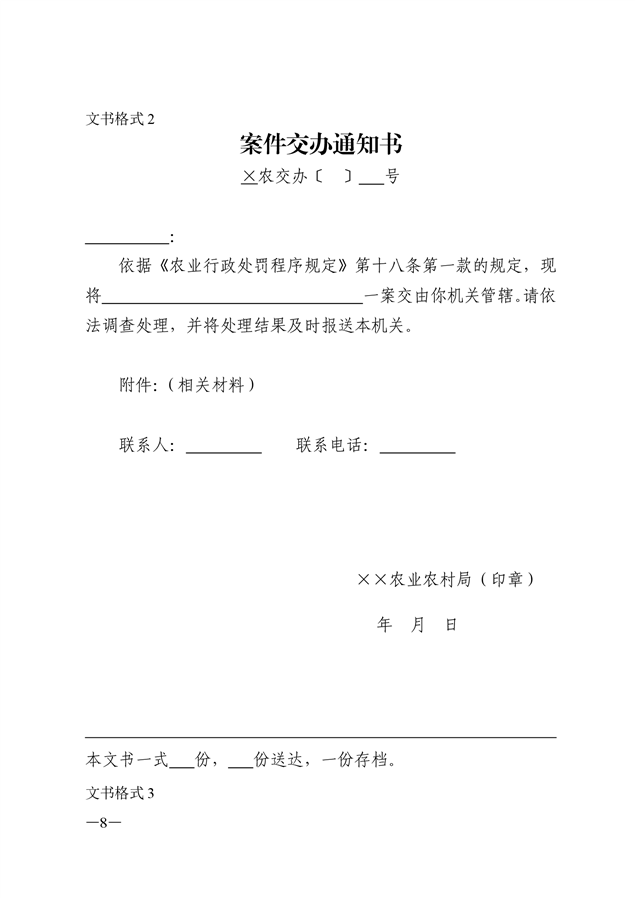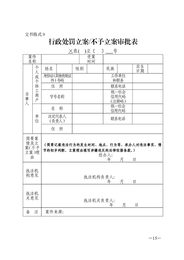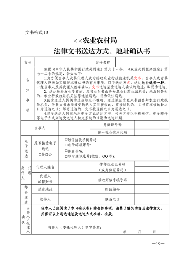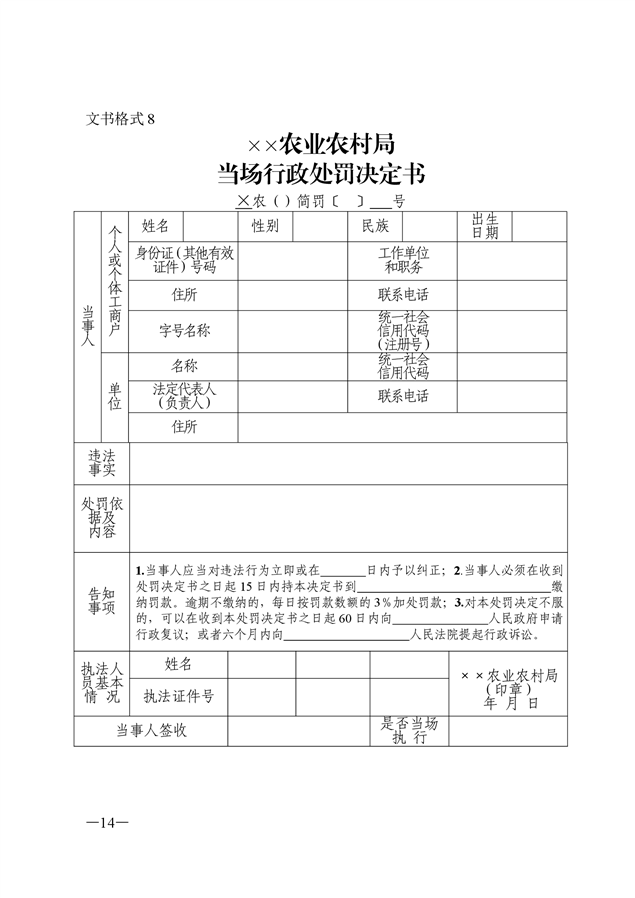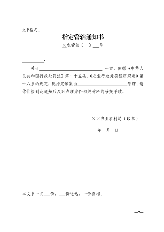 农业行政执法文书
