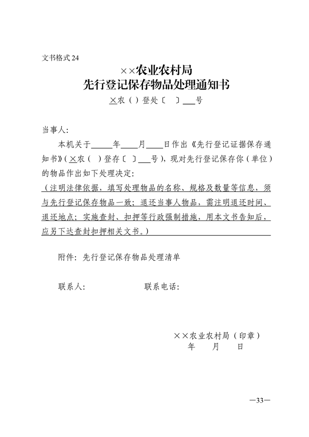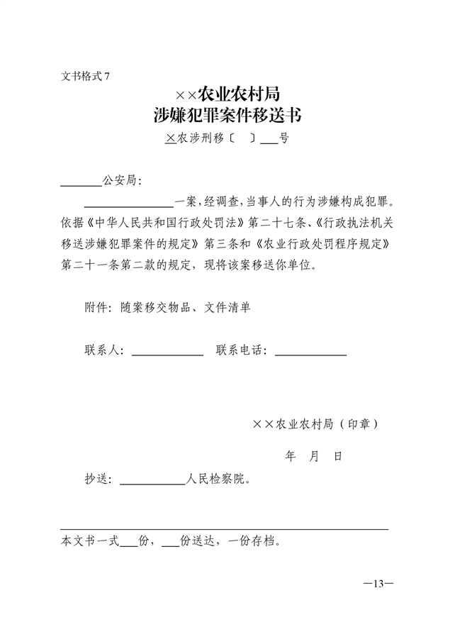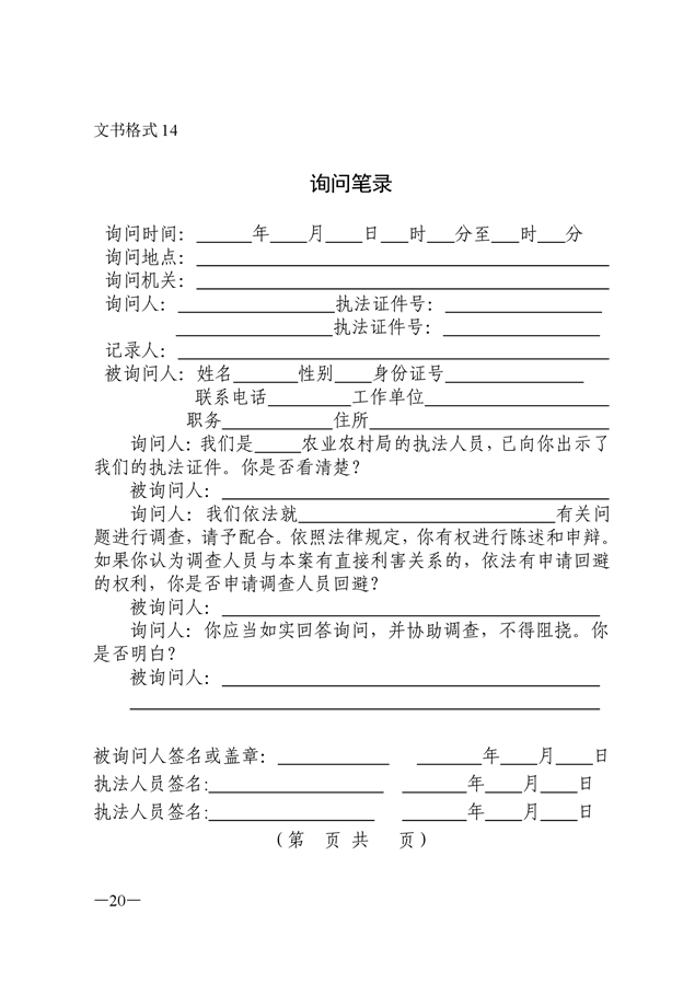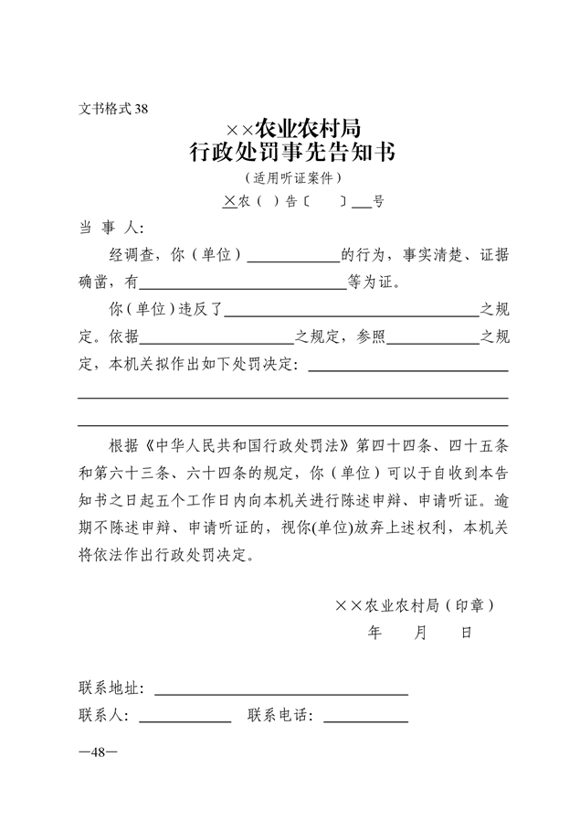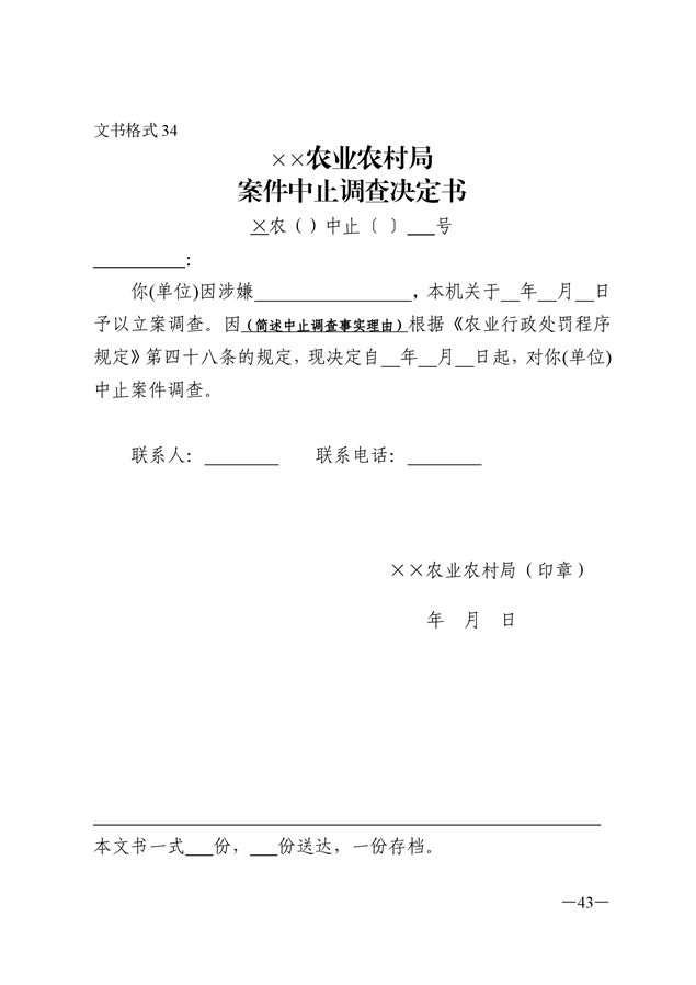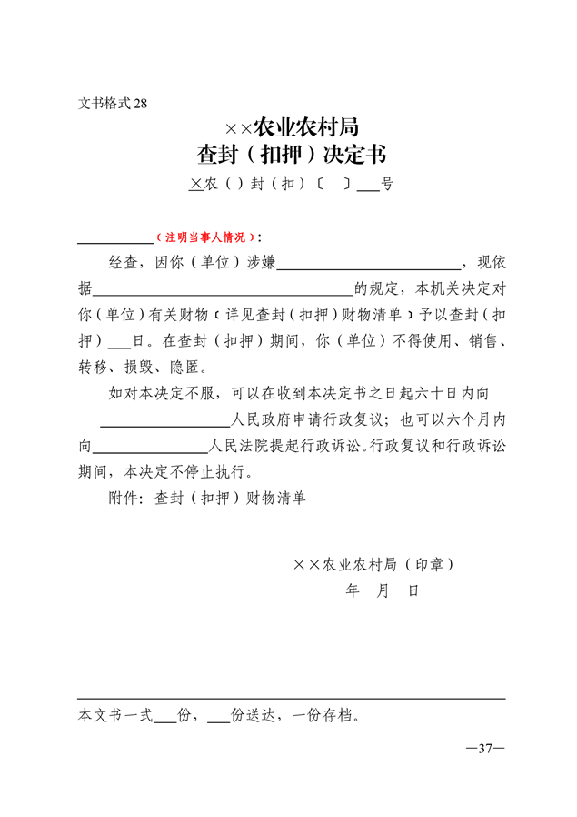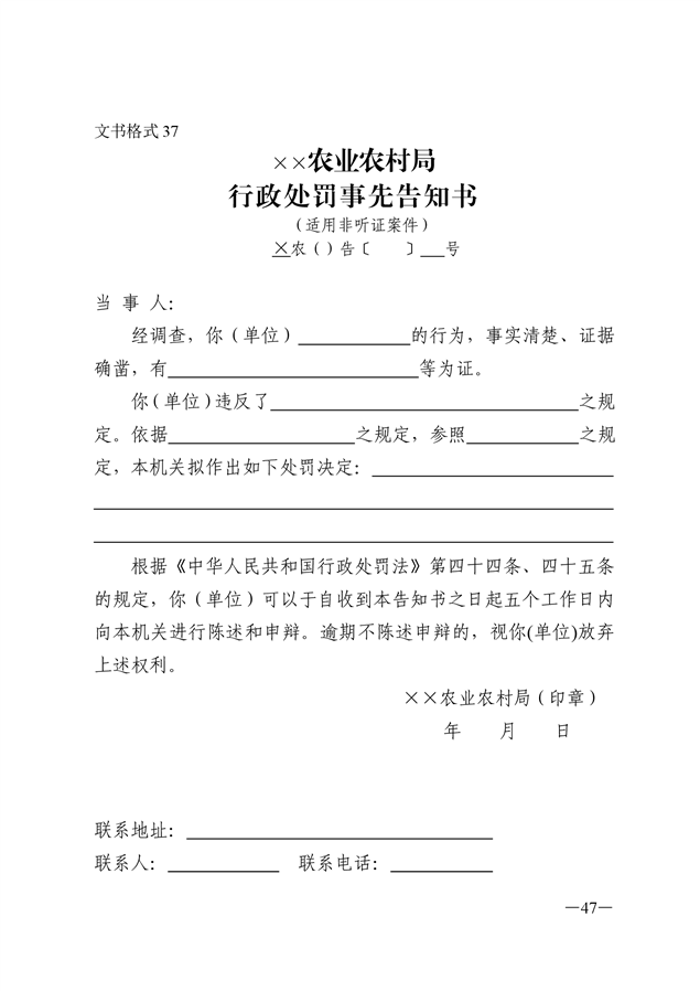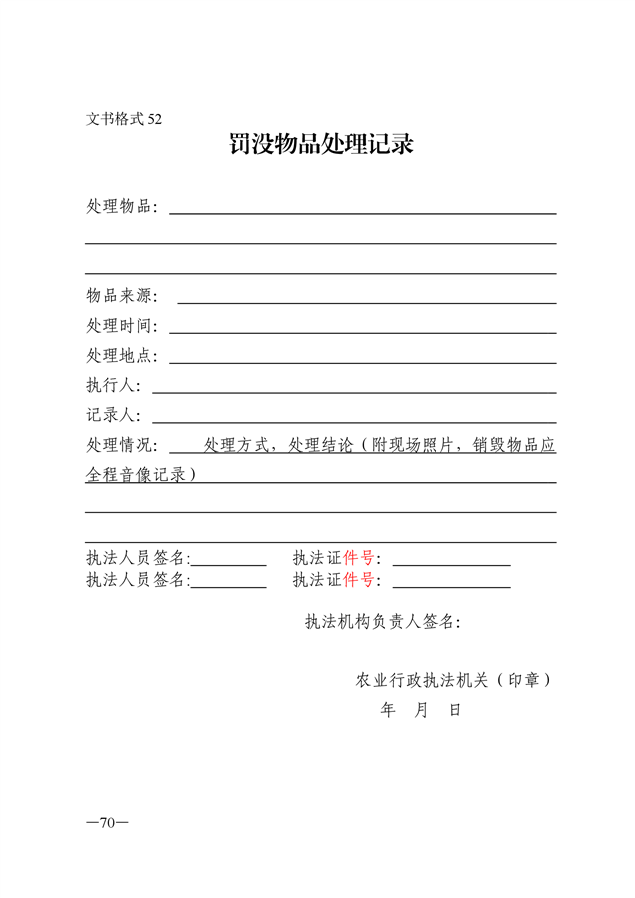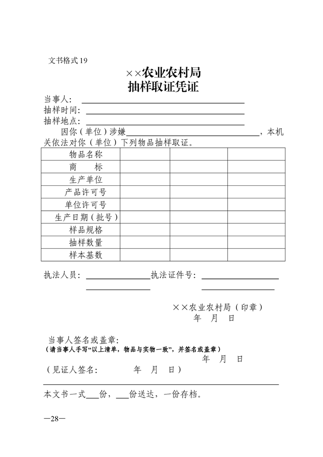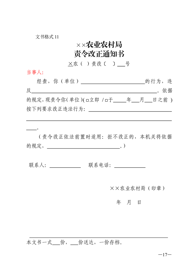 农业行政执法文书