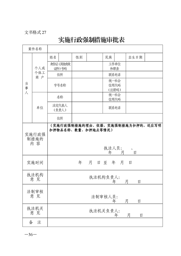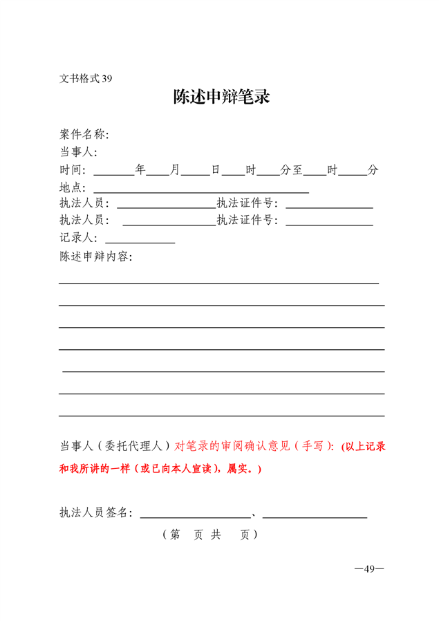 行政执法文书样本