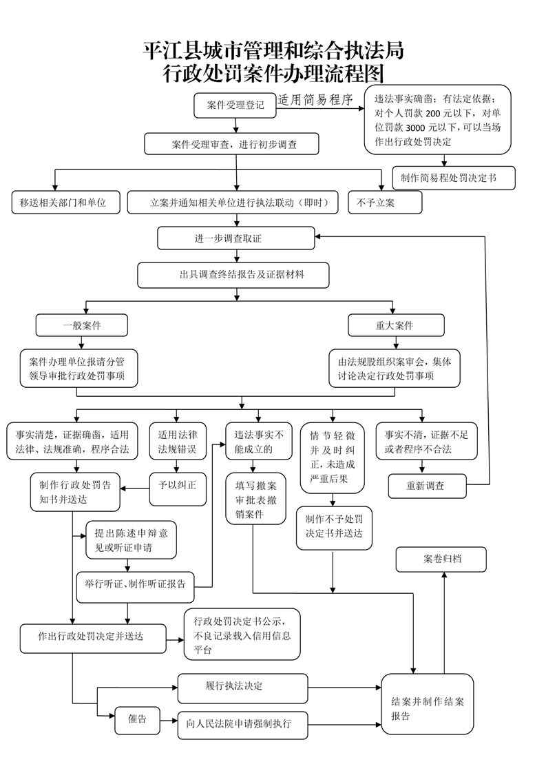 2023年平江县城市管理和综合执法局行政处罚案件办理流程图