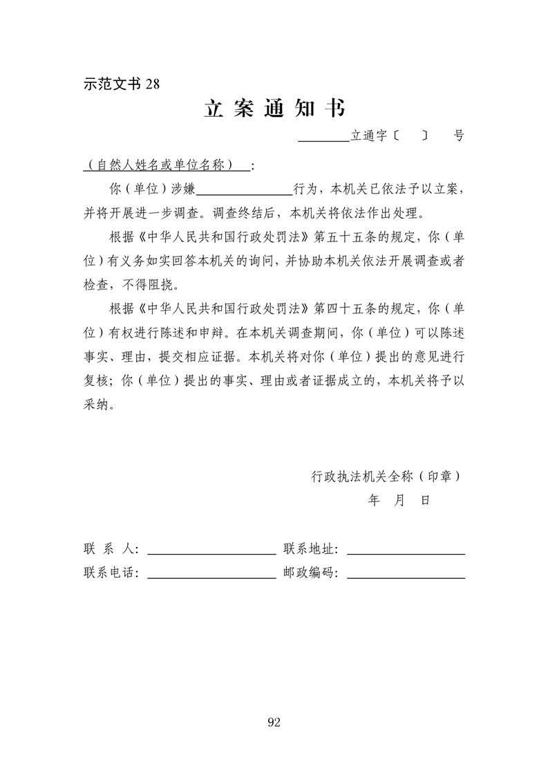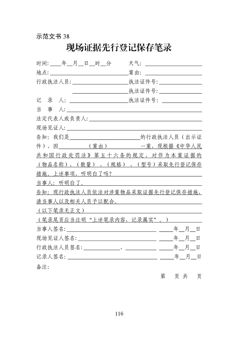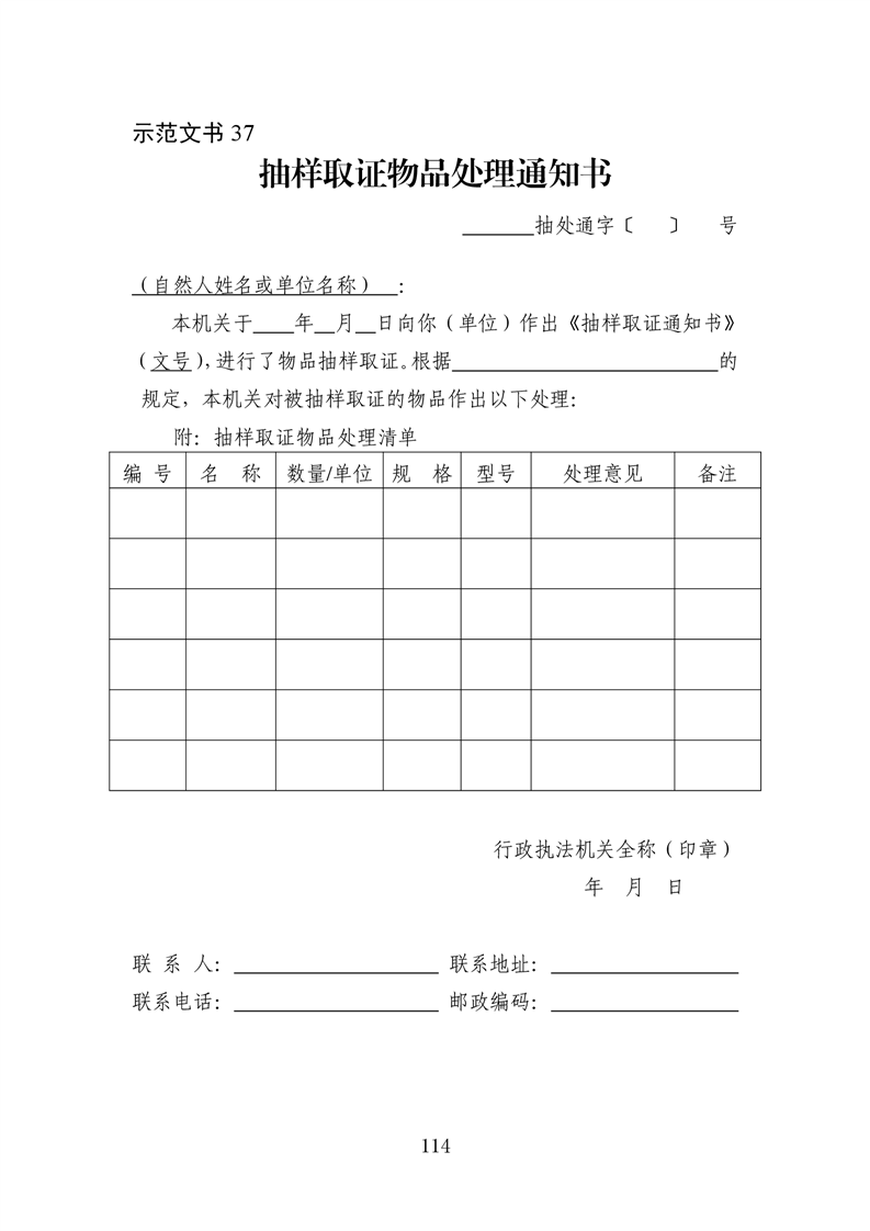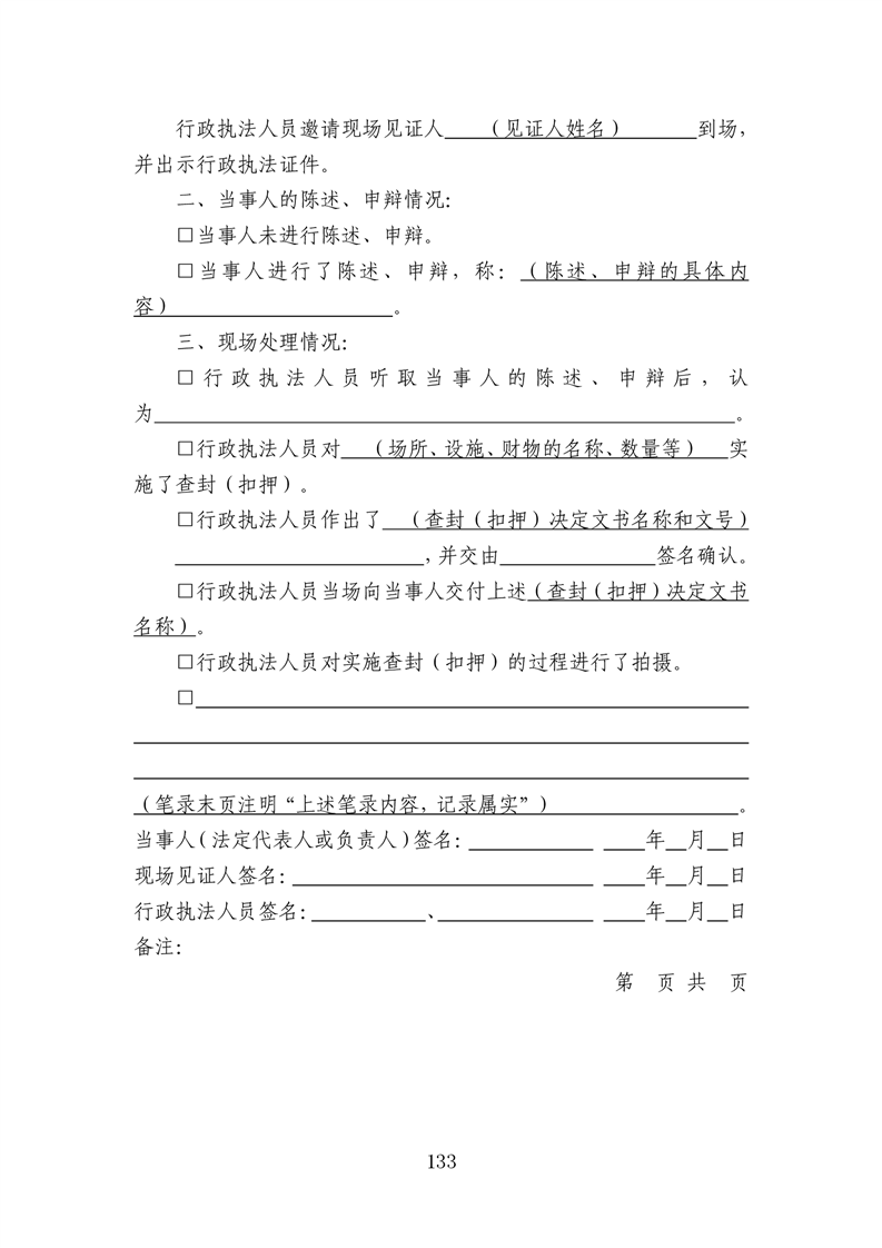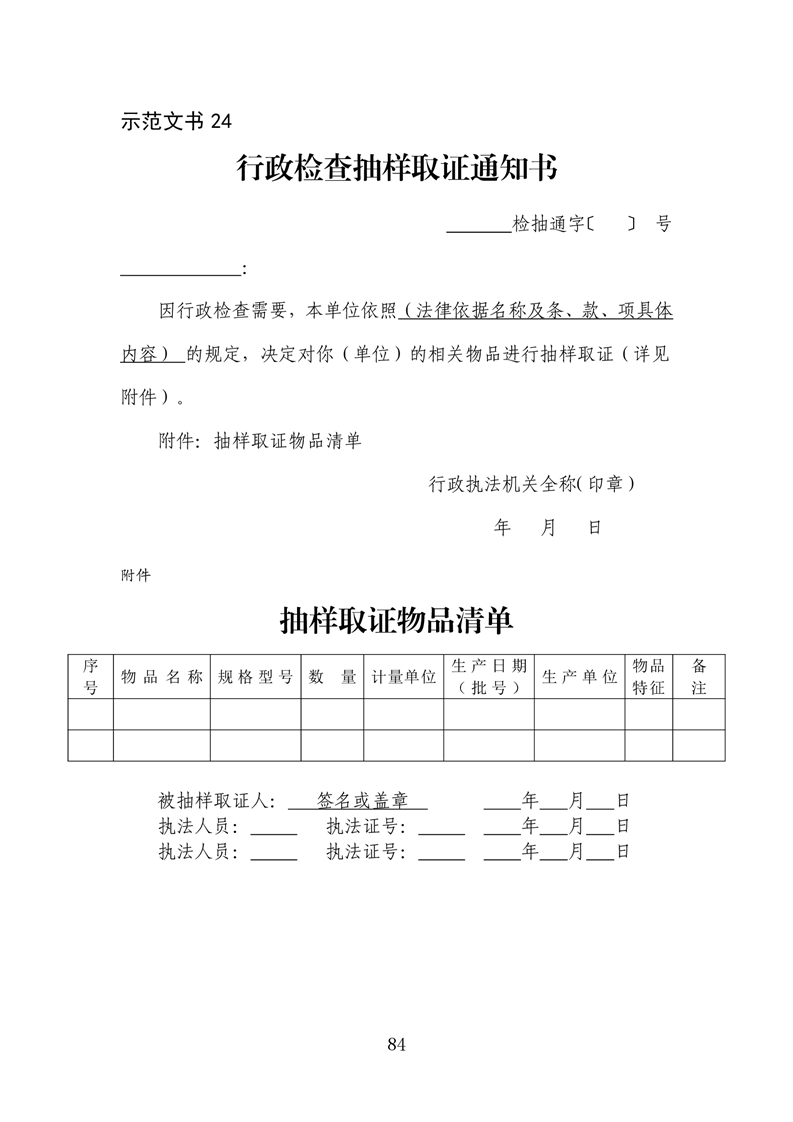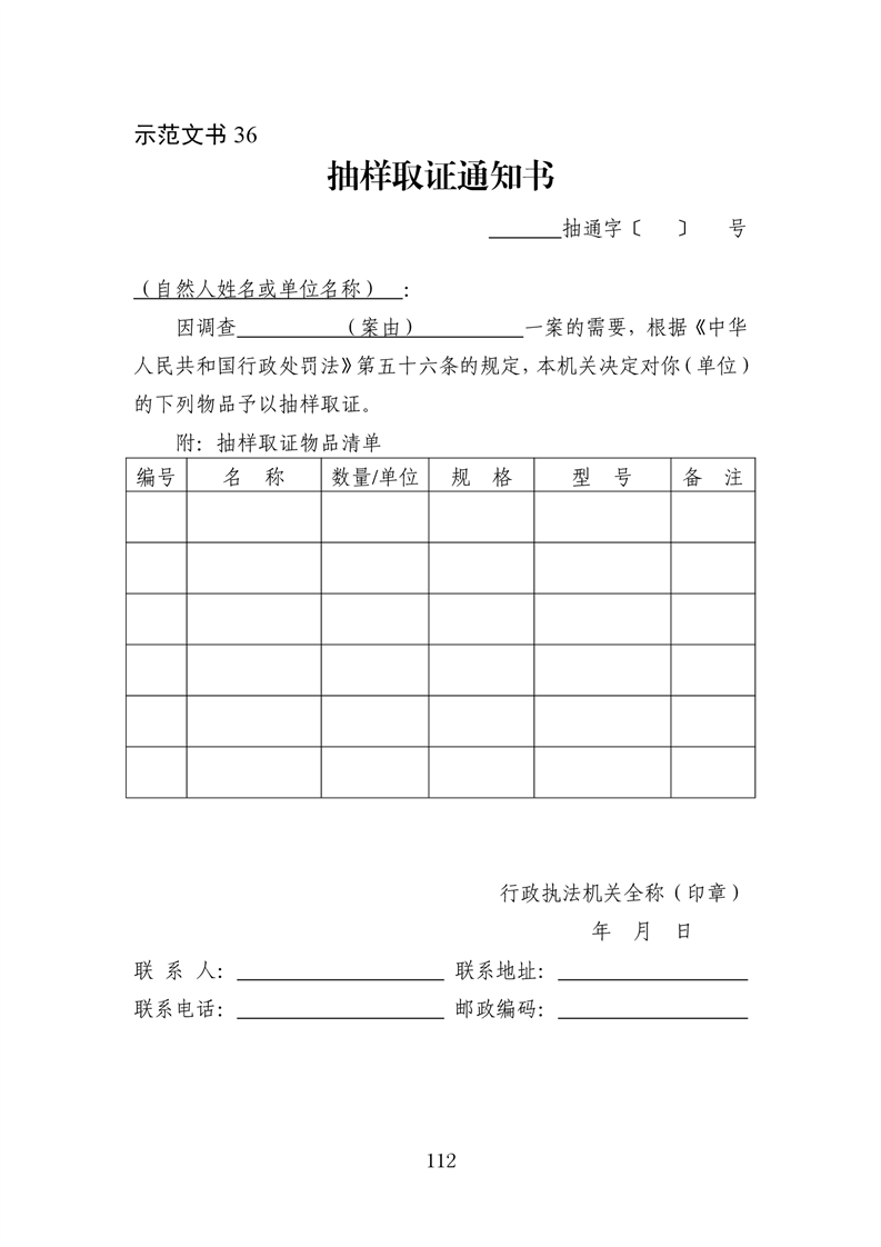 行政执法文书样本