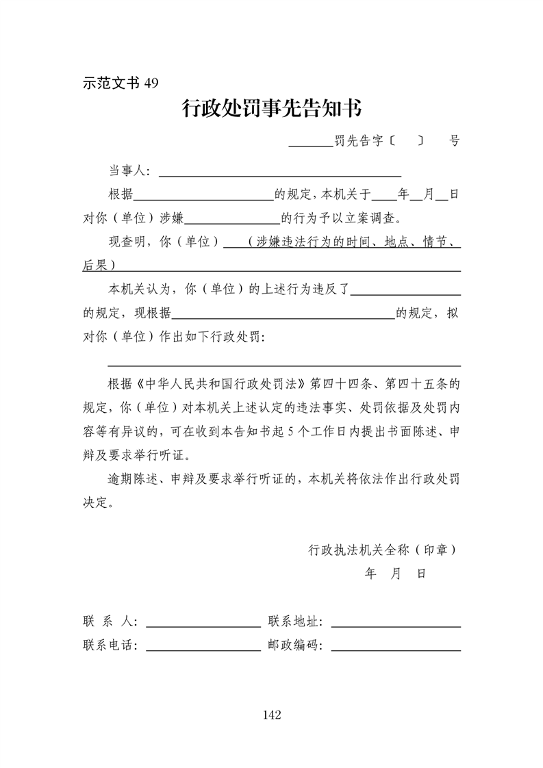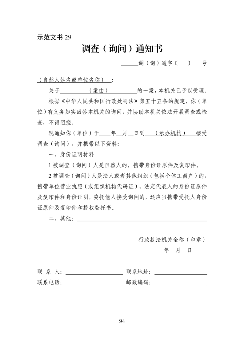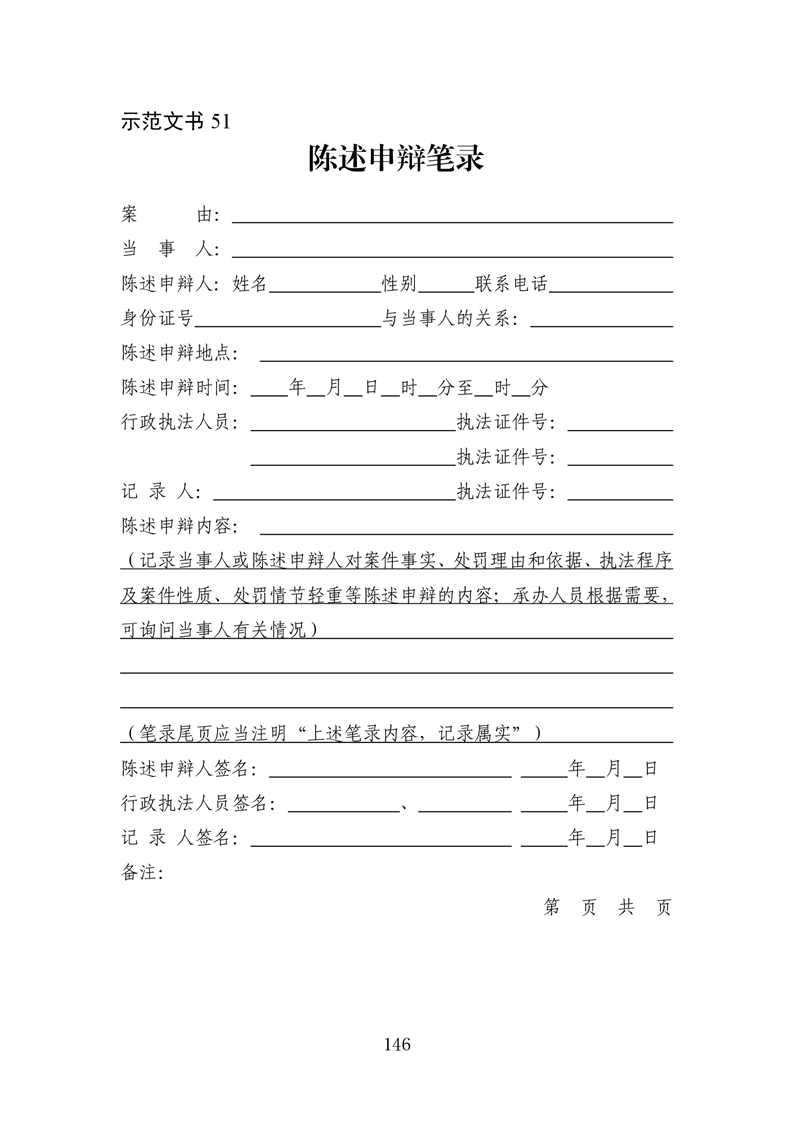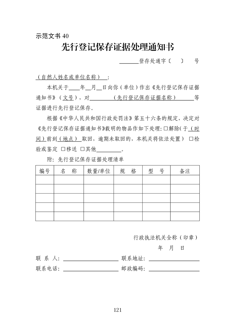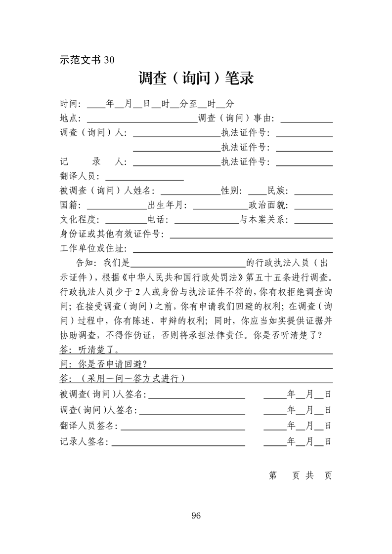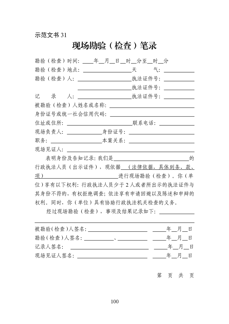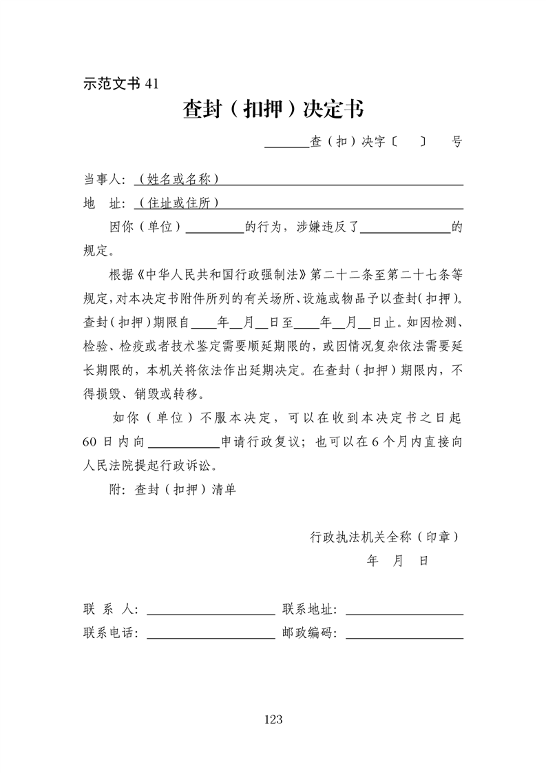 行政执法文书样本