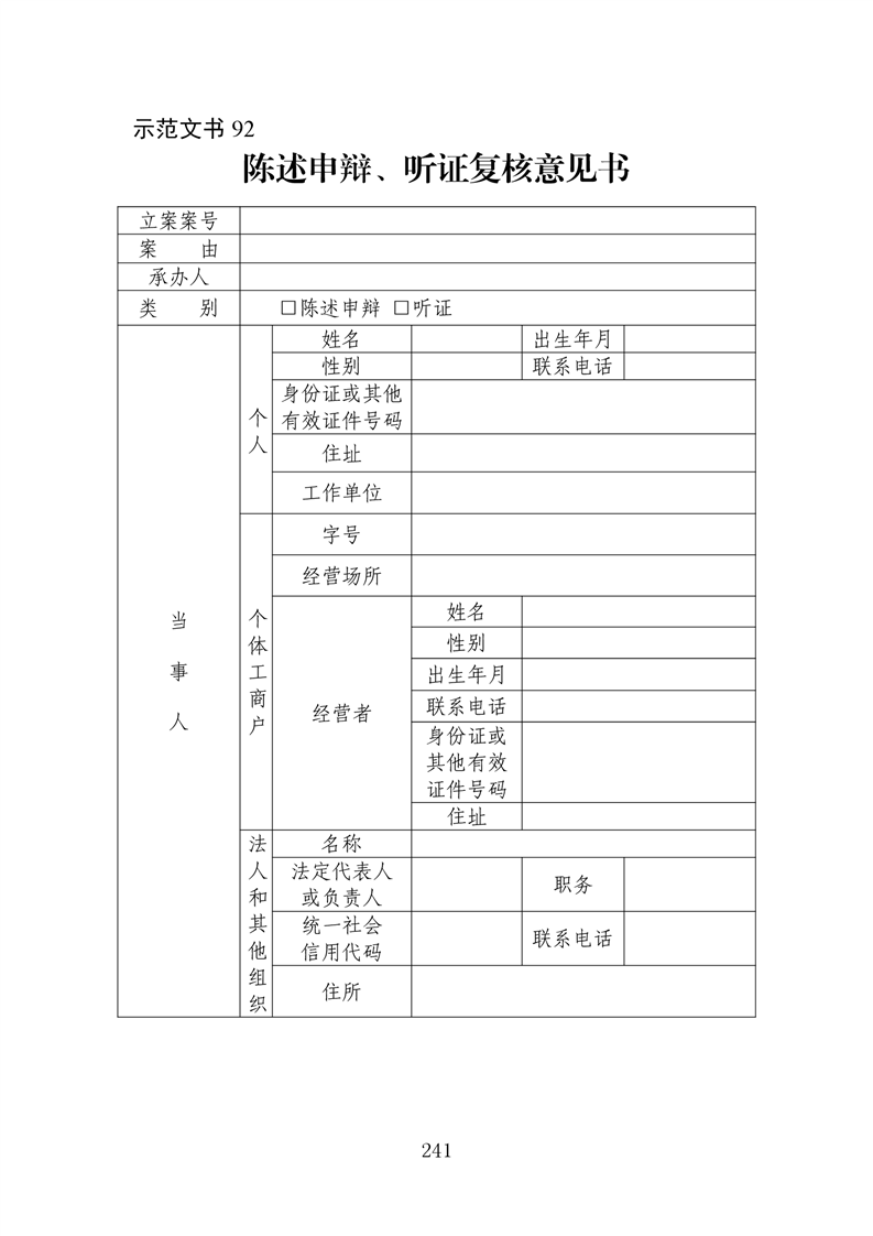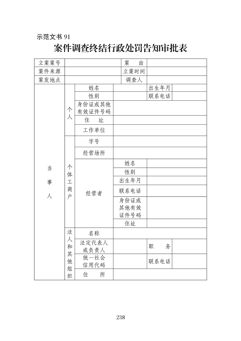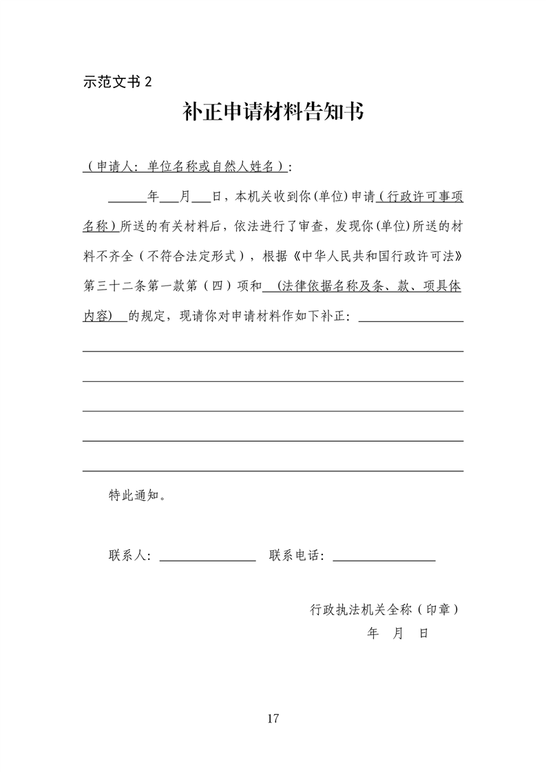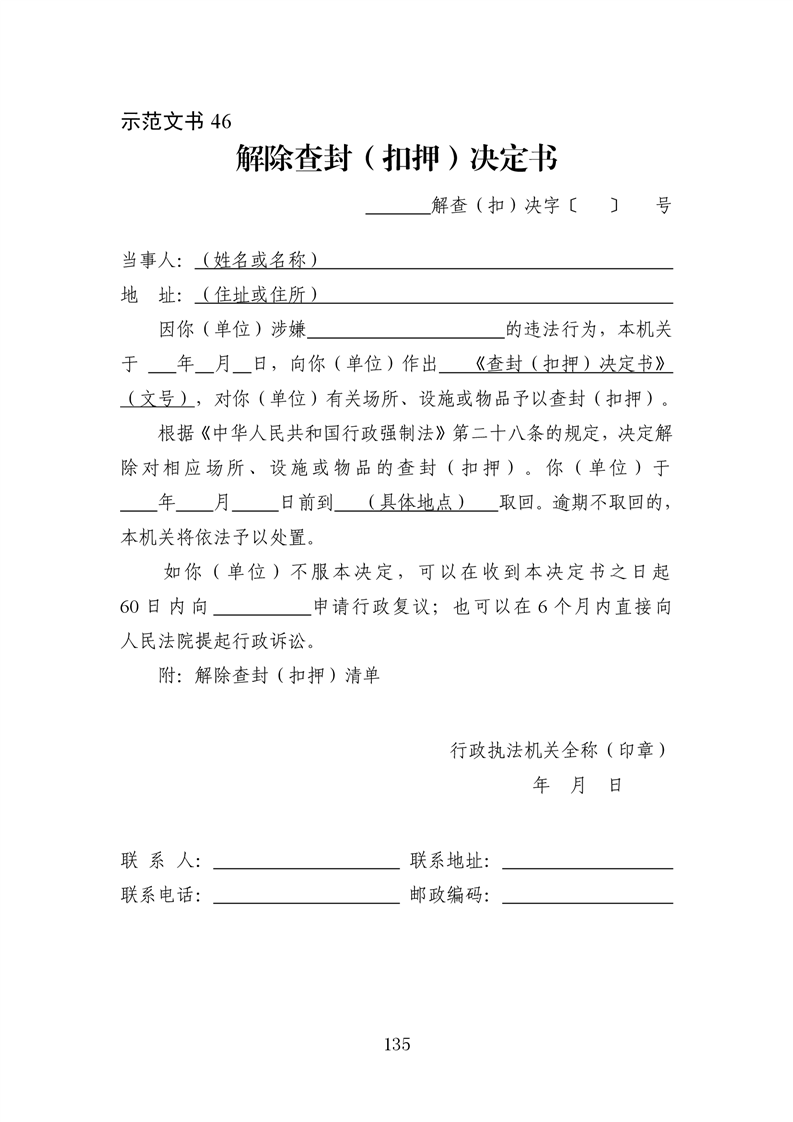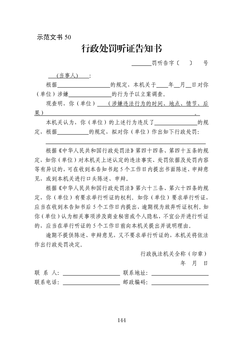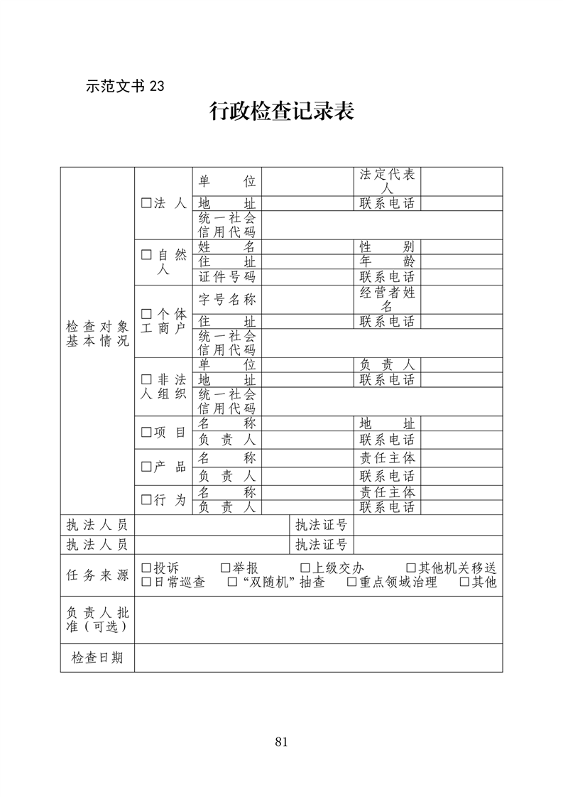 行政执法文书样本