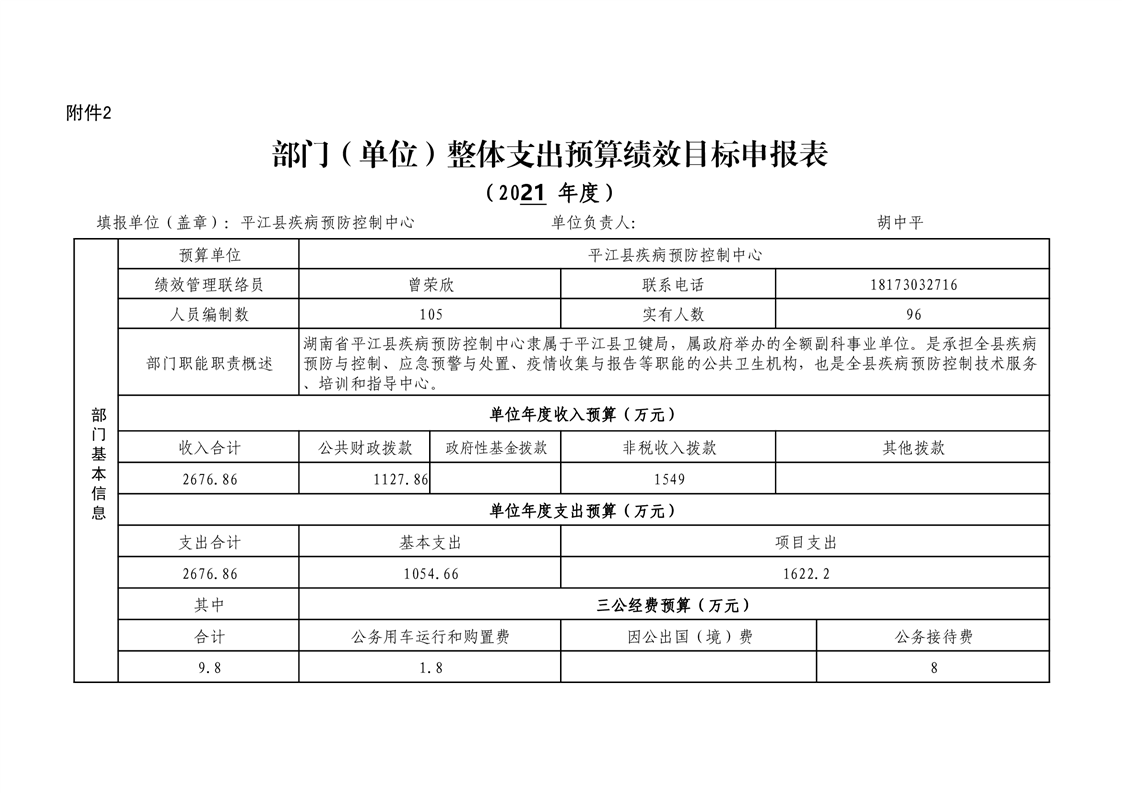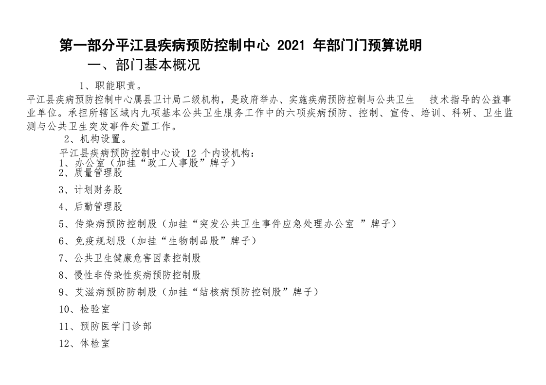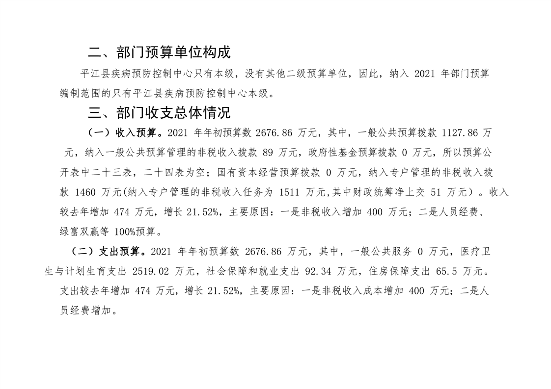 2021年部门预算编报说明(平江县疾病预防控制中心)