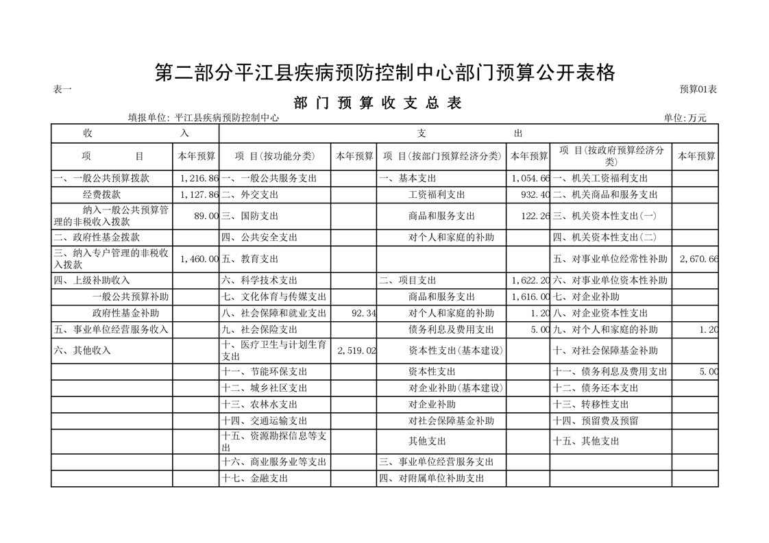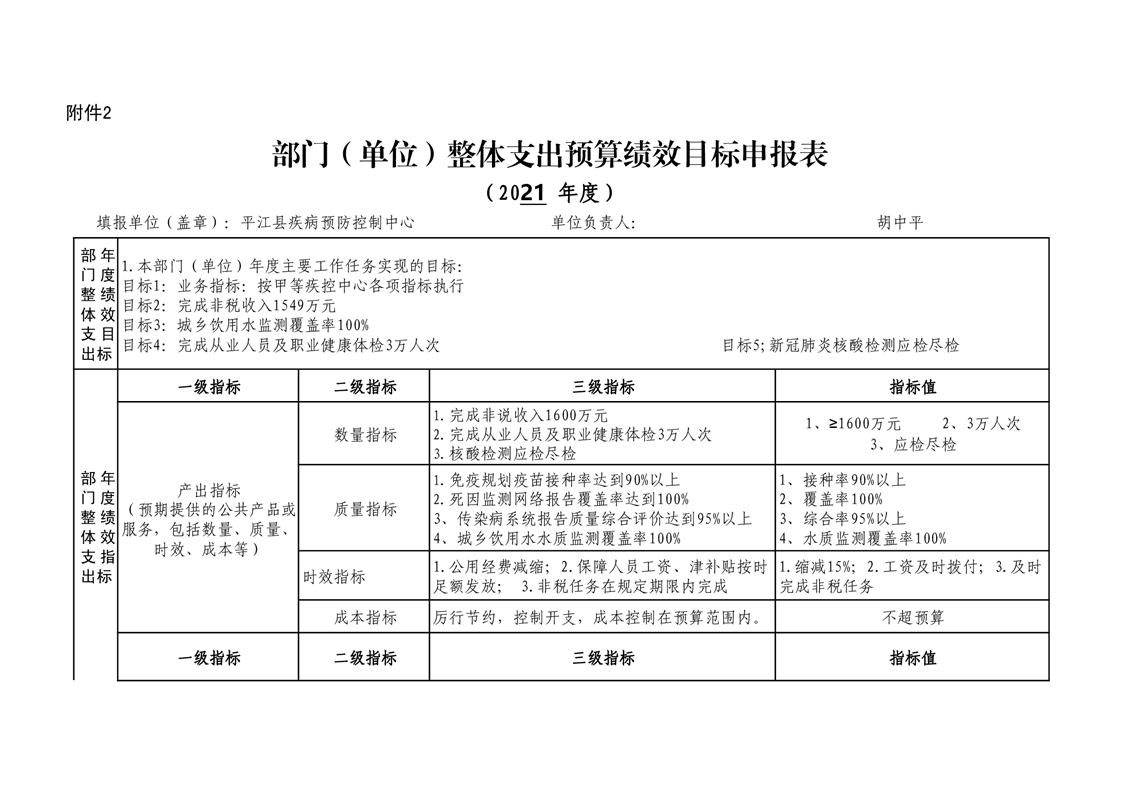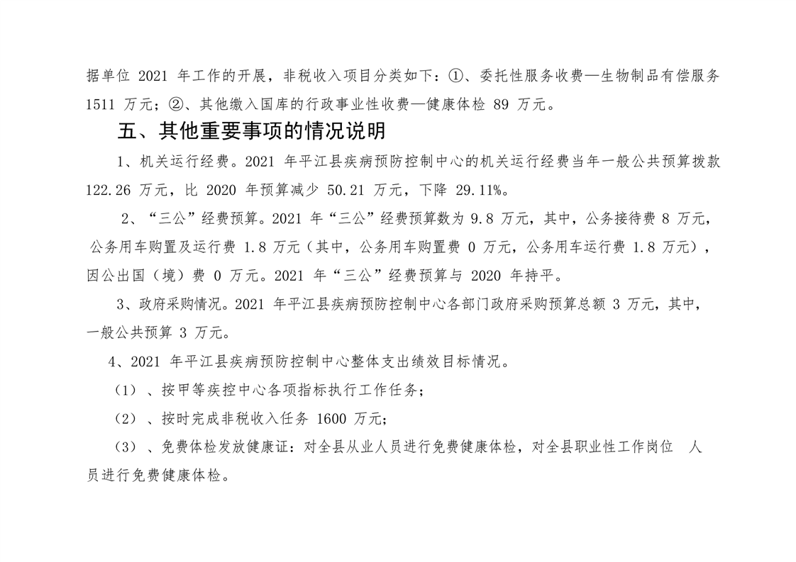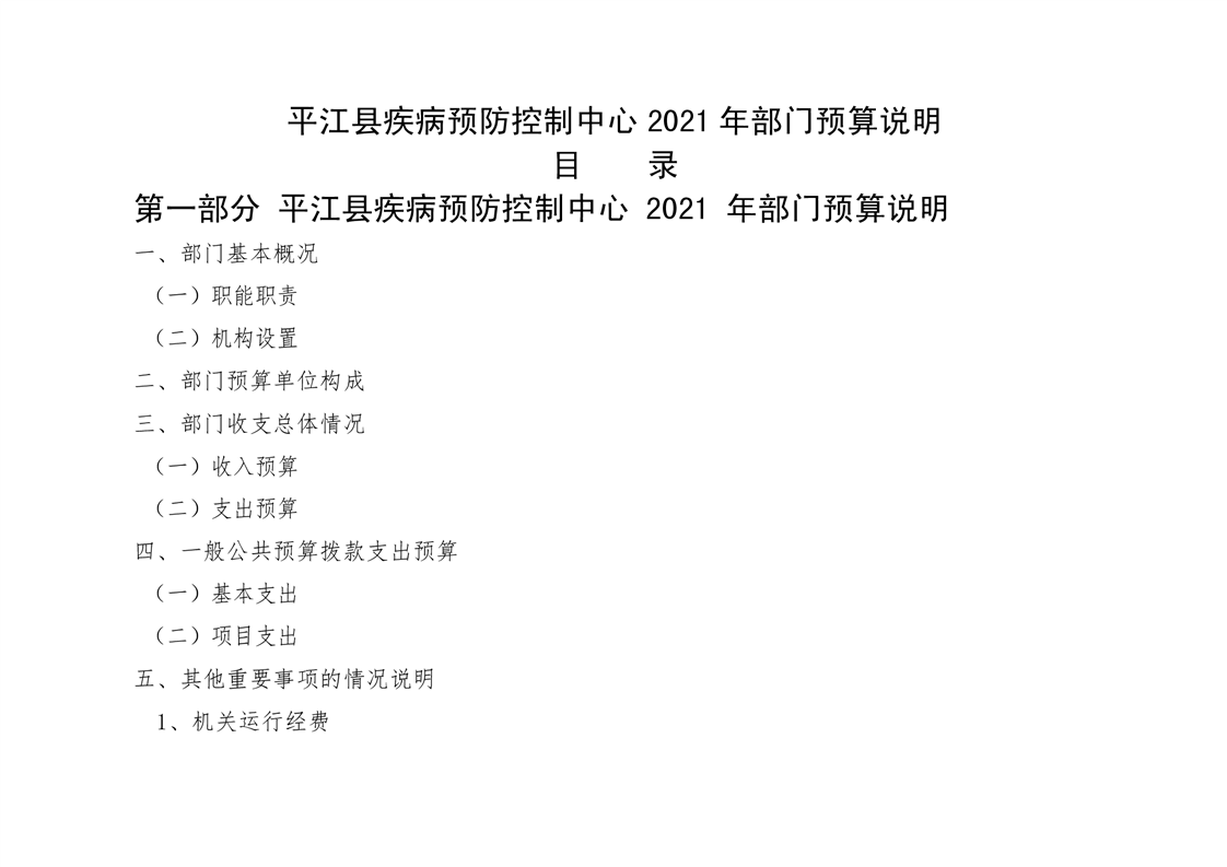 2021年部门预算编报说明(平江县疾病预防控制中心)