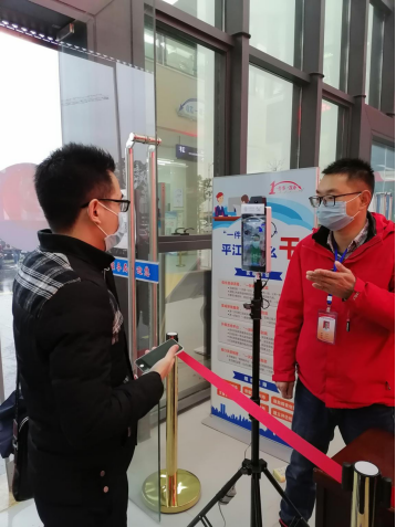为提高进厅检测效率,尽量减少近距离接触,减少人员排队扎堆现象,县行政审批服务局在多方考察论证的基础上,引进“人脸+体温”监测的热感成像设备,通过脸部体温检测,精准识别发热人群,超过37.3度即时报警,每平均两秒可检测一人,实现了安全和效率的双提升。