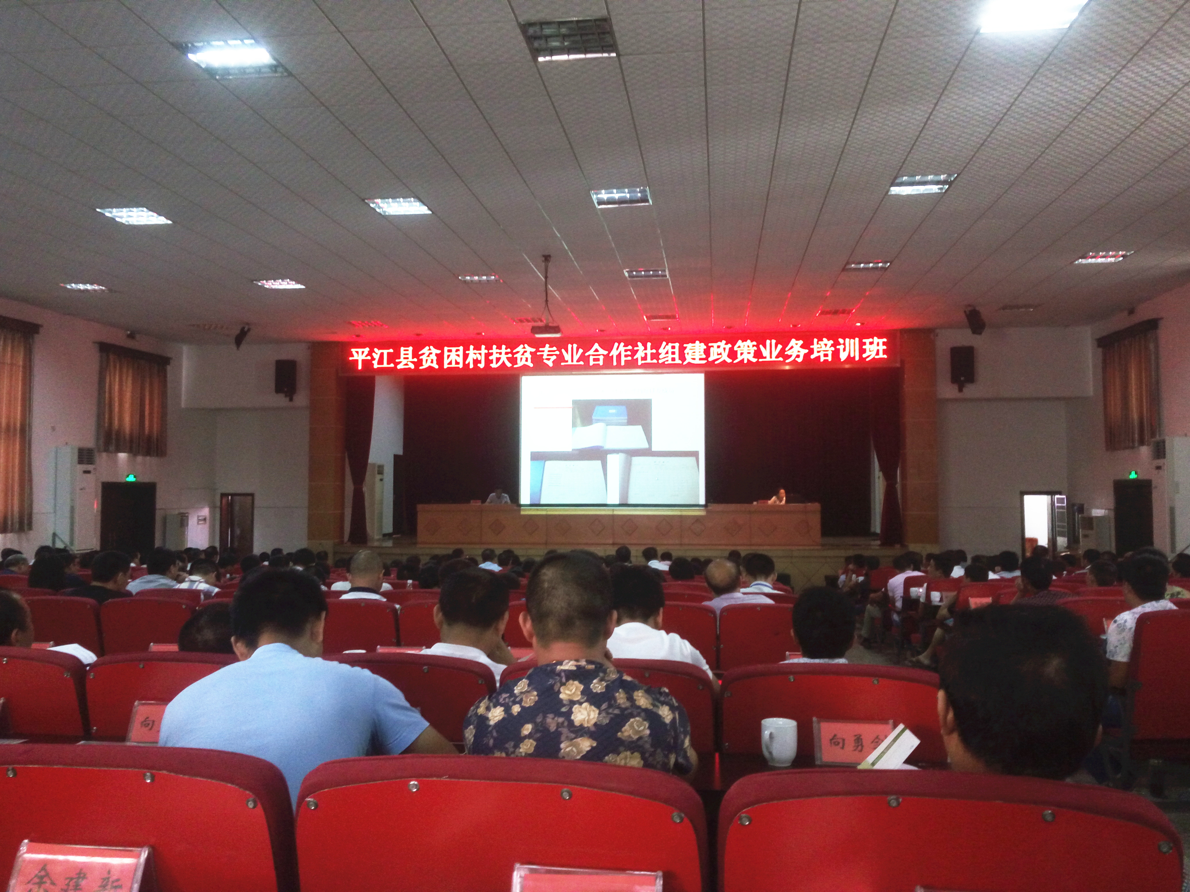 为贯彻落实全省扶贫开发工作会议精神,指导和规范贫困村农民专业合作社建设,深入推进贫困村农业产业精准扶贫, 8月15日上午,“平江县贫困村扶贫专业合作社组建政策业务培训班”在县委党校开班。