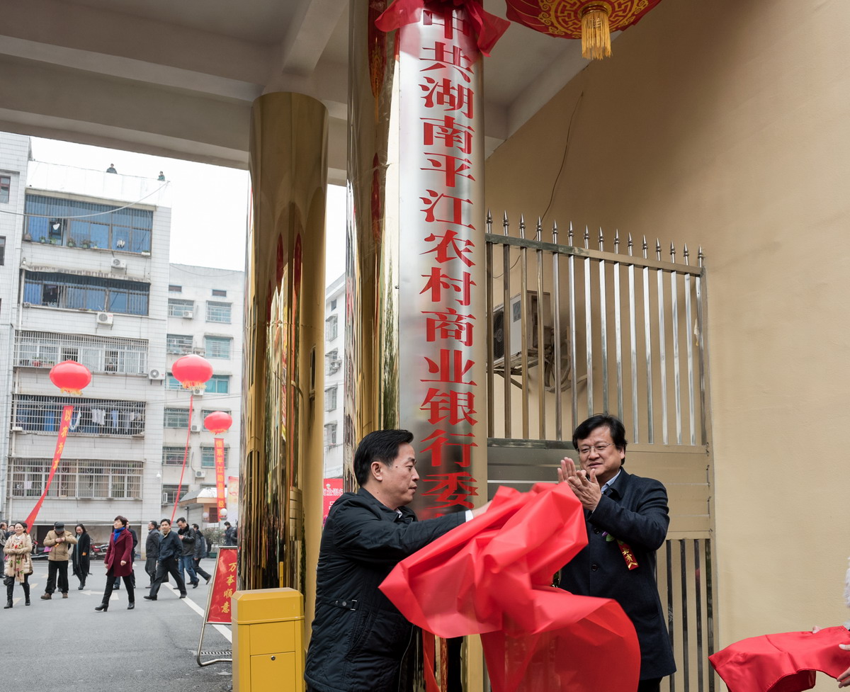 湖南省信用社联合社理事长张志军与平江县委书记汪涛为平江农商银行揭牌